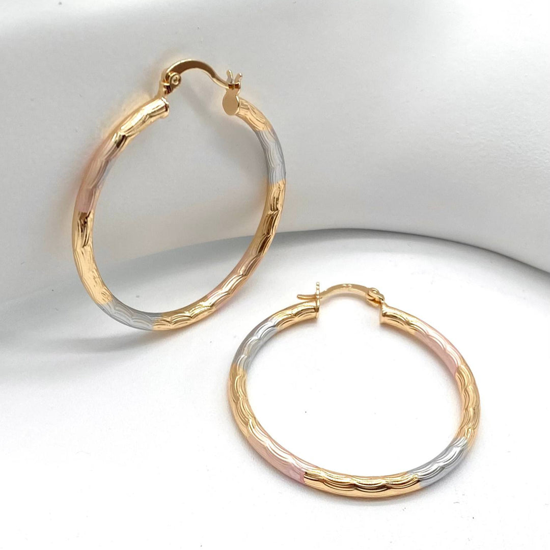 ARRACADA TRES TONOS CHAPA DE ORO 18K