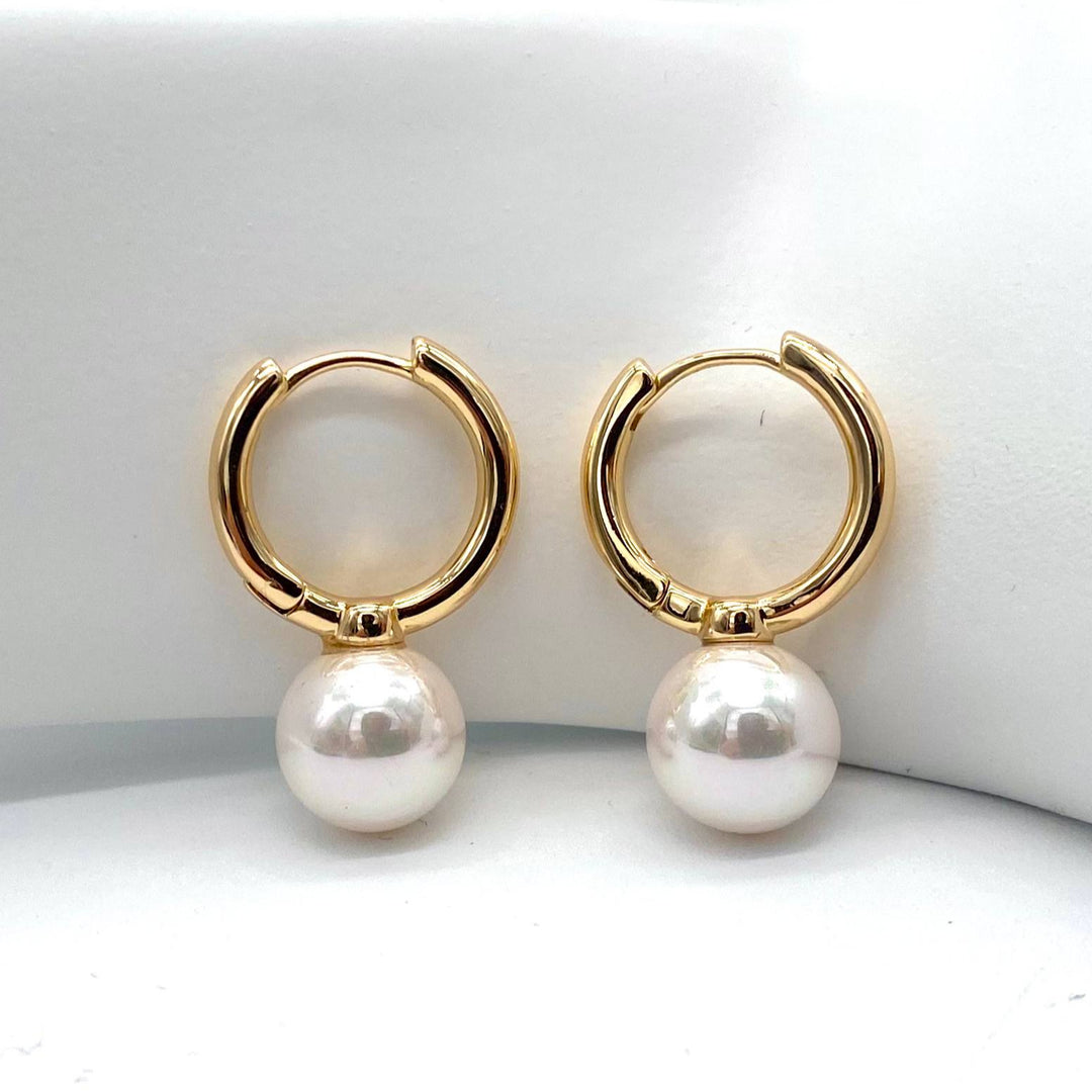 HUGGIE CON PERLA CHAPA DE ORO 18K