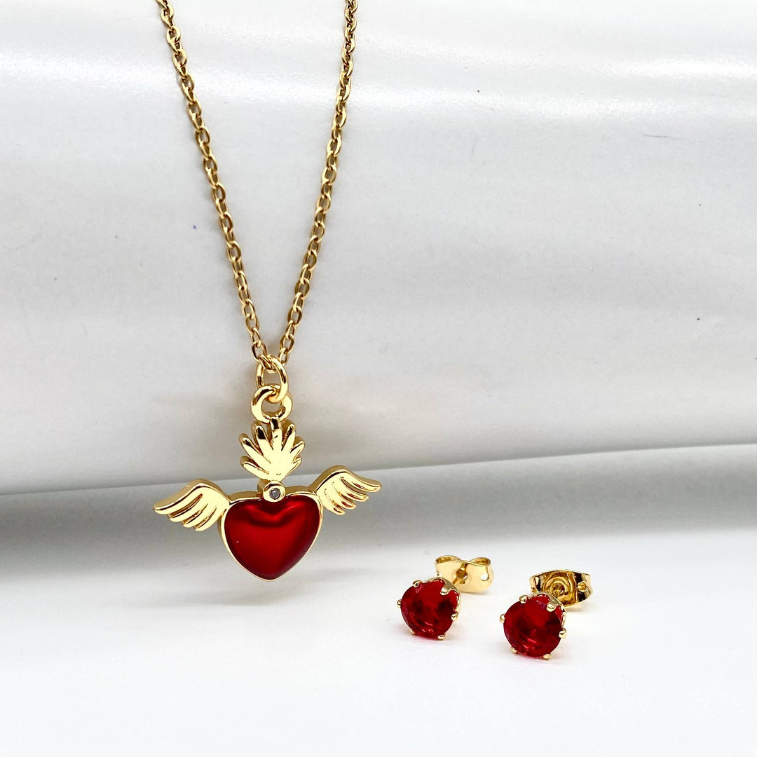 JUEGO CEREZAS CHAPA DE ORO 18K