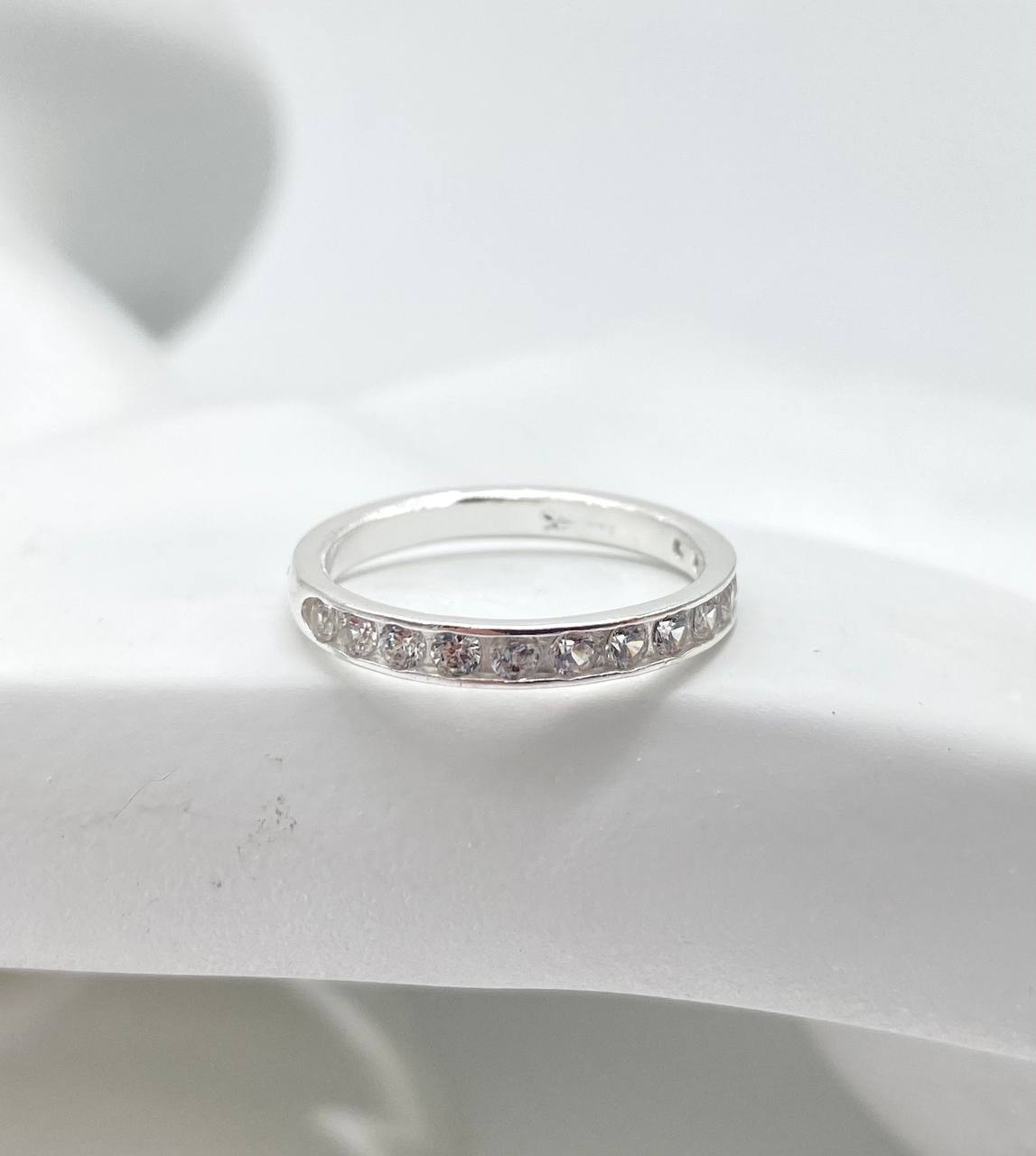 Anillo churumbela con zirconia en blanco y fucsia en plata 925.
