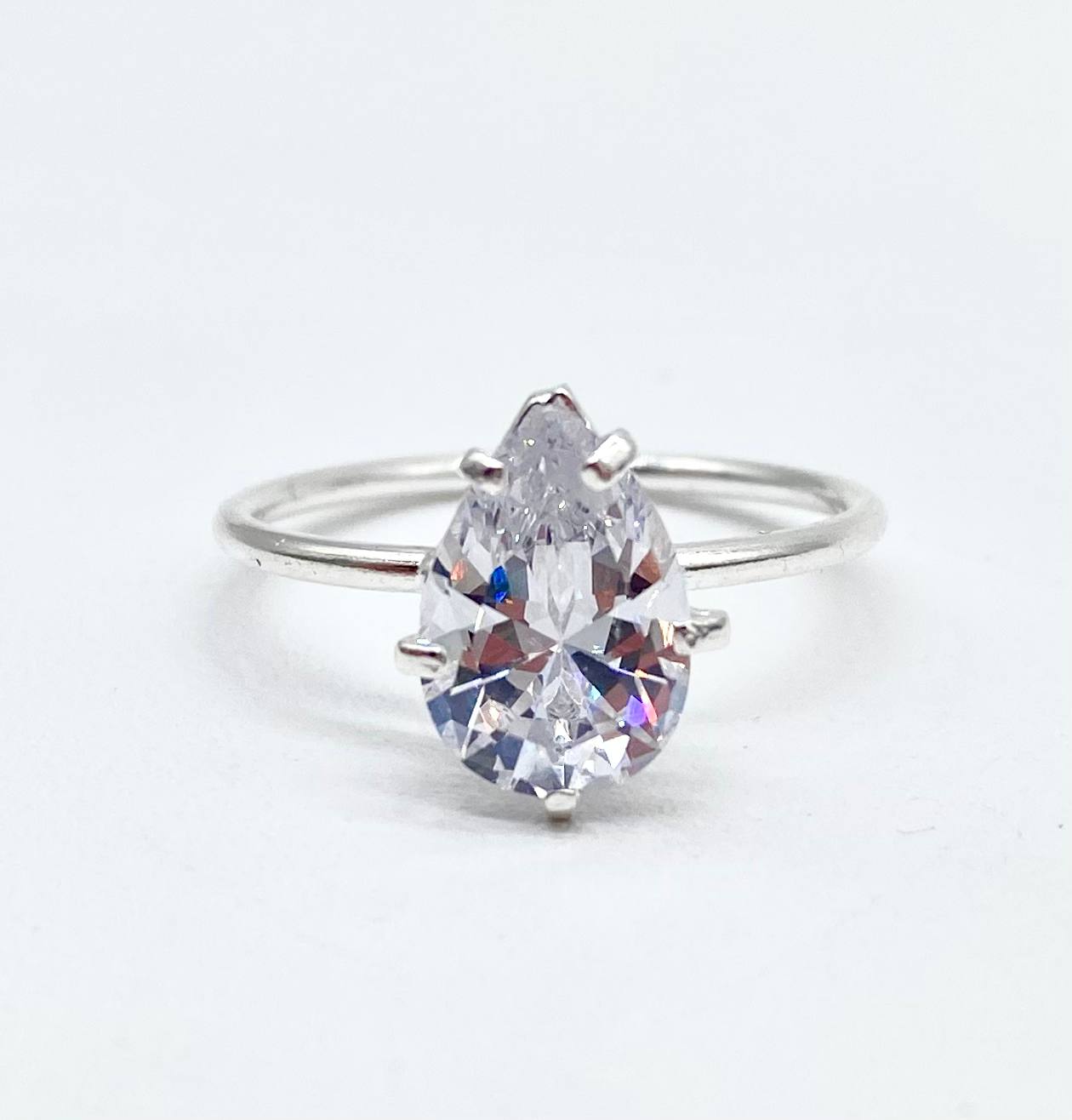 Anillo solitario piedra cuadrada , en plata 925 italiana.