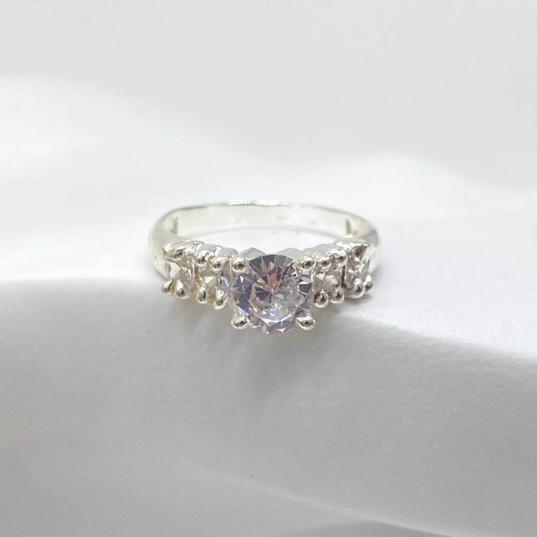 Anillo solitario con zirconia en forma oval color verde, en plata 925 mexicana.