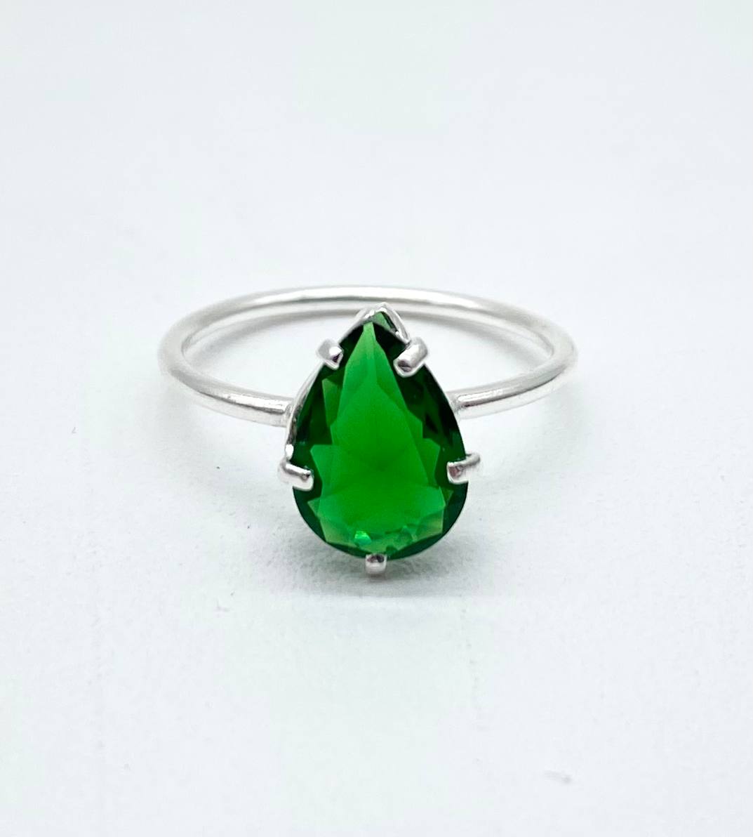 Anillo solitario con zirconias en forma de corazon, en plata 925 mexicana.