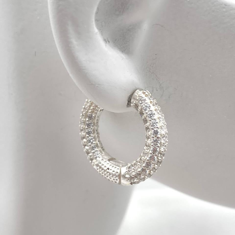 Arete estilo violador con figura de flor colgante con zirconia, en plata 925 mexicana.