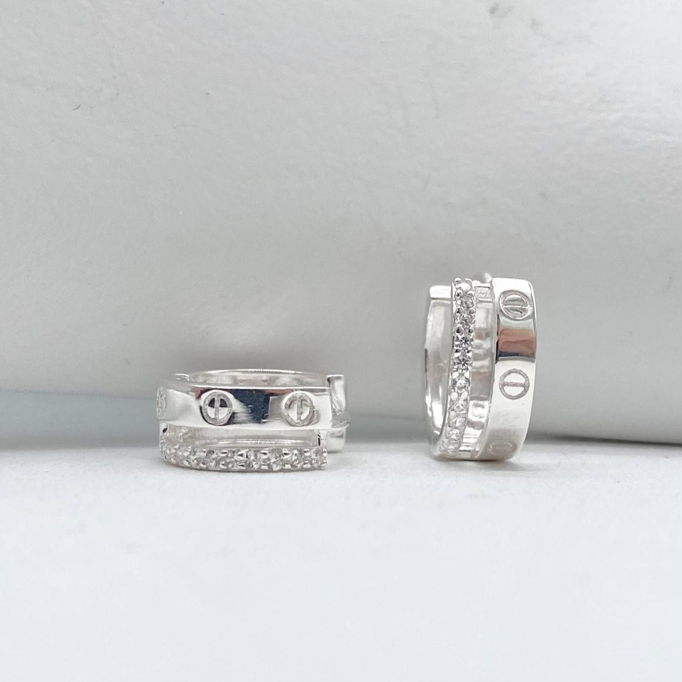 Arracada con textura en plata 925 italiana.