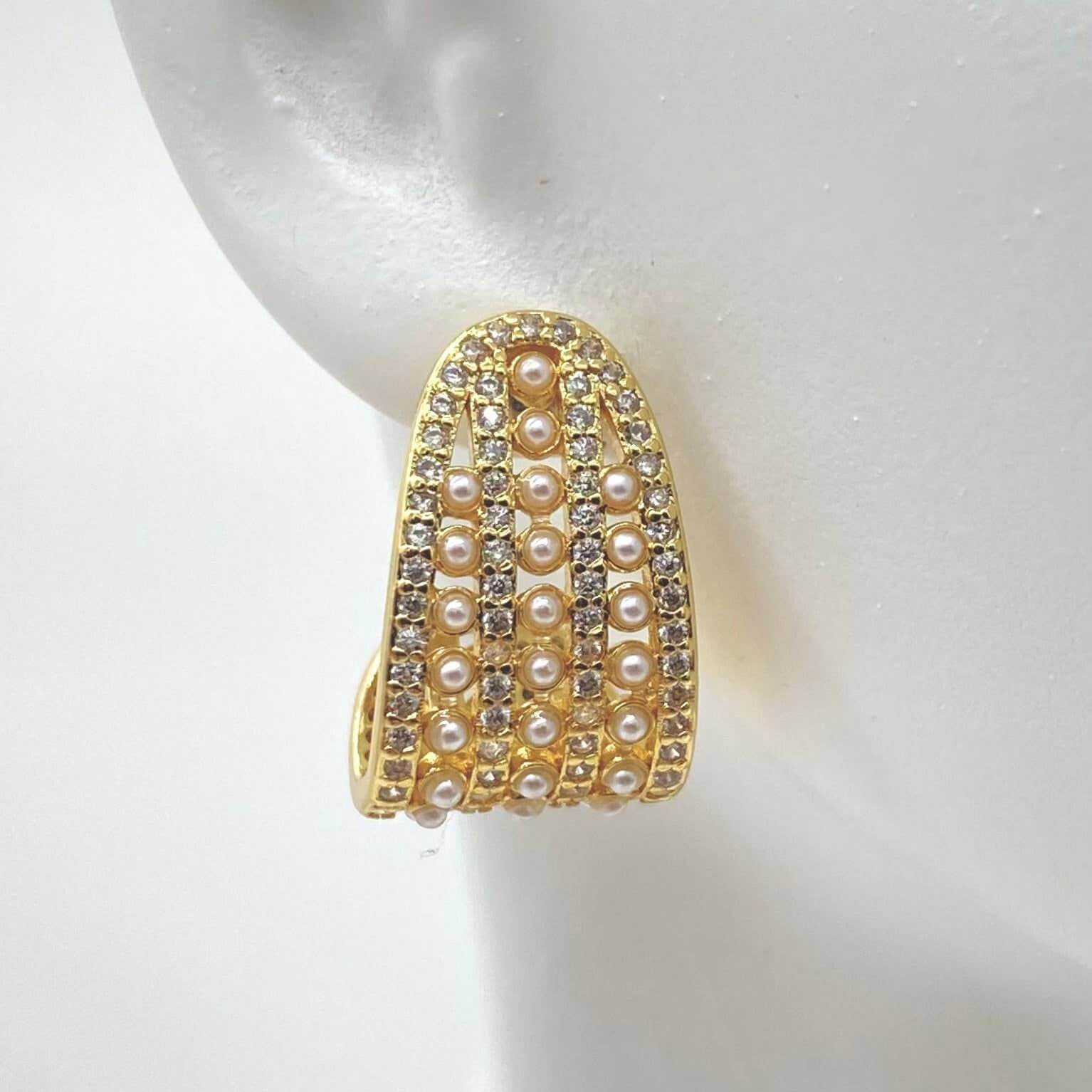 Aretes doble corazon, elaborados en chapa de oro 18K y cubiertos de zirconias brillantes. Diseño elegante y perfecto para cualquier ocasión.