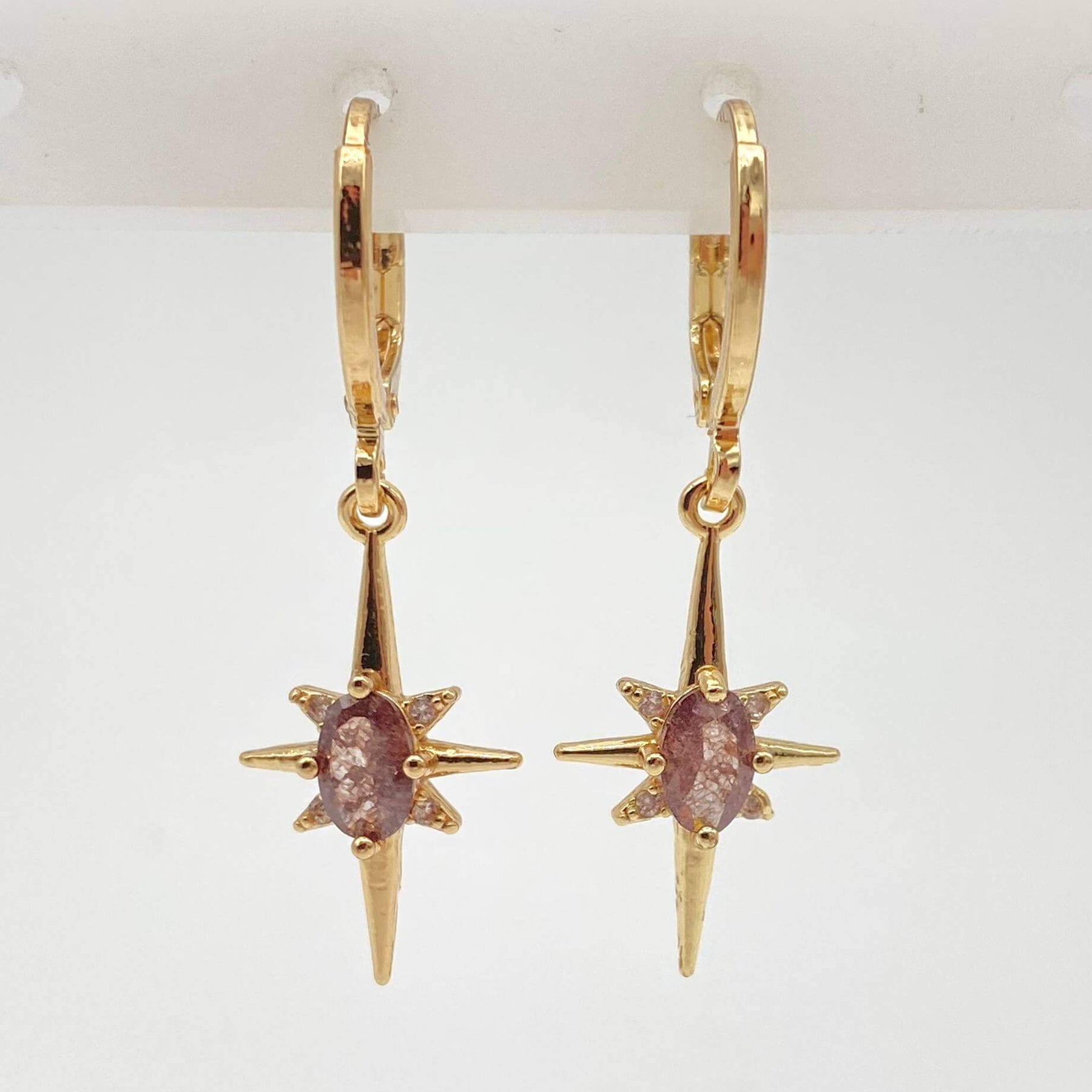 Huggie con estrella colgante morada, elaborados en chapa de oro 18K, perfecto para cualquier ocasión.