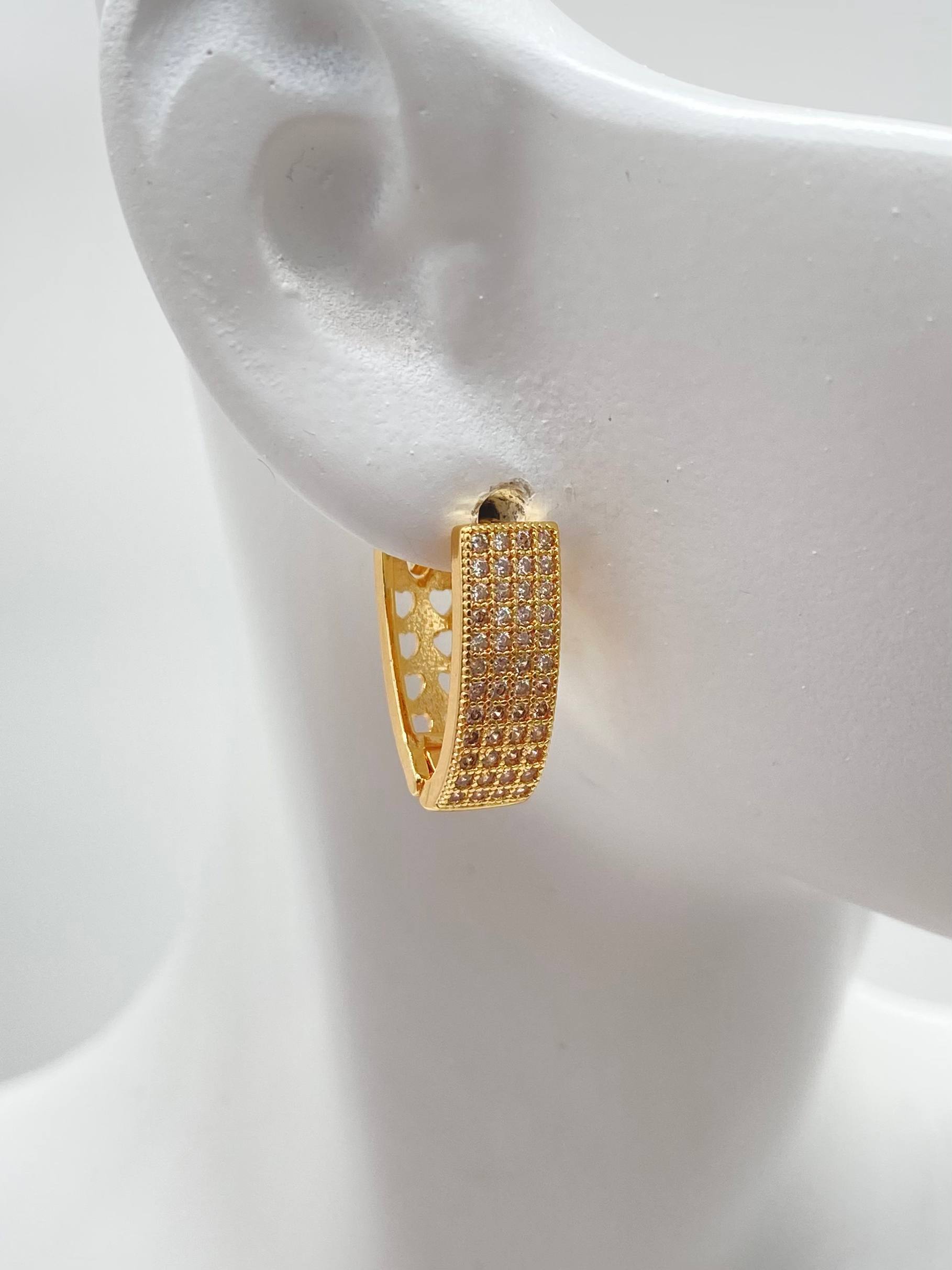 Arete en chapa de oro 18k en forma de hoja con zirconia alrededor.