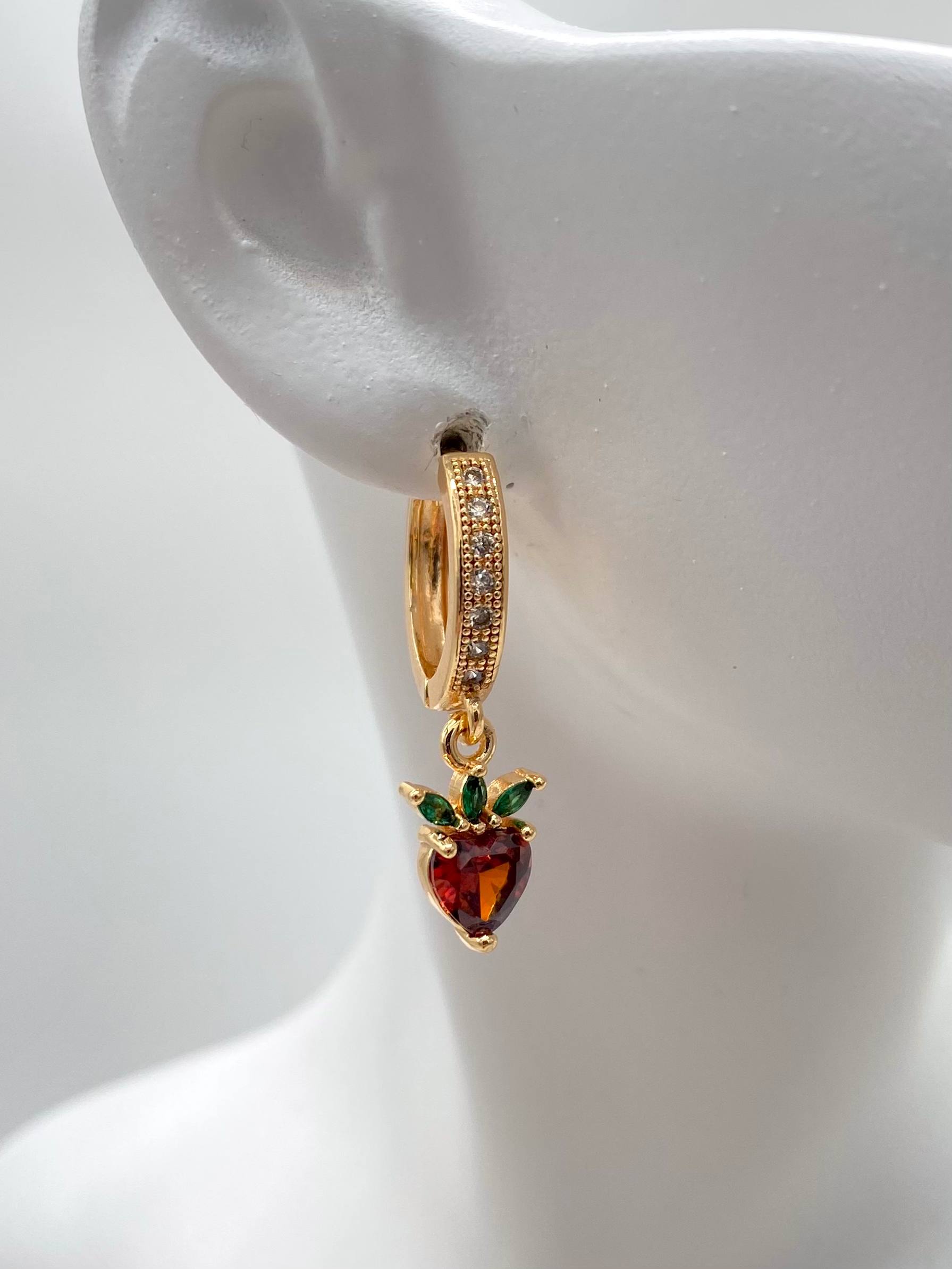 Huggie en Chapa de Oro 18k en forma V con Zirconia.