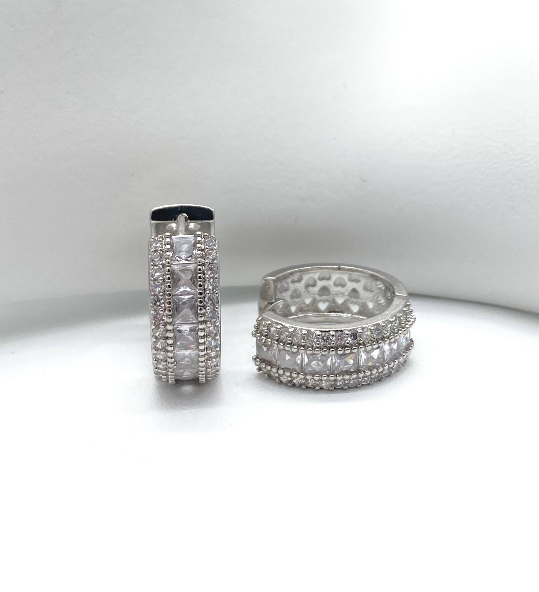 Huggie en chapa de oro 18k, Canasta con corazon y zirconias.