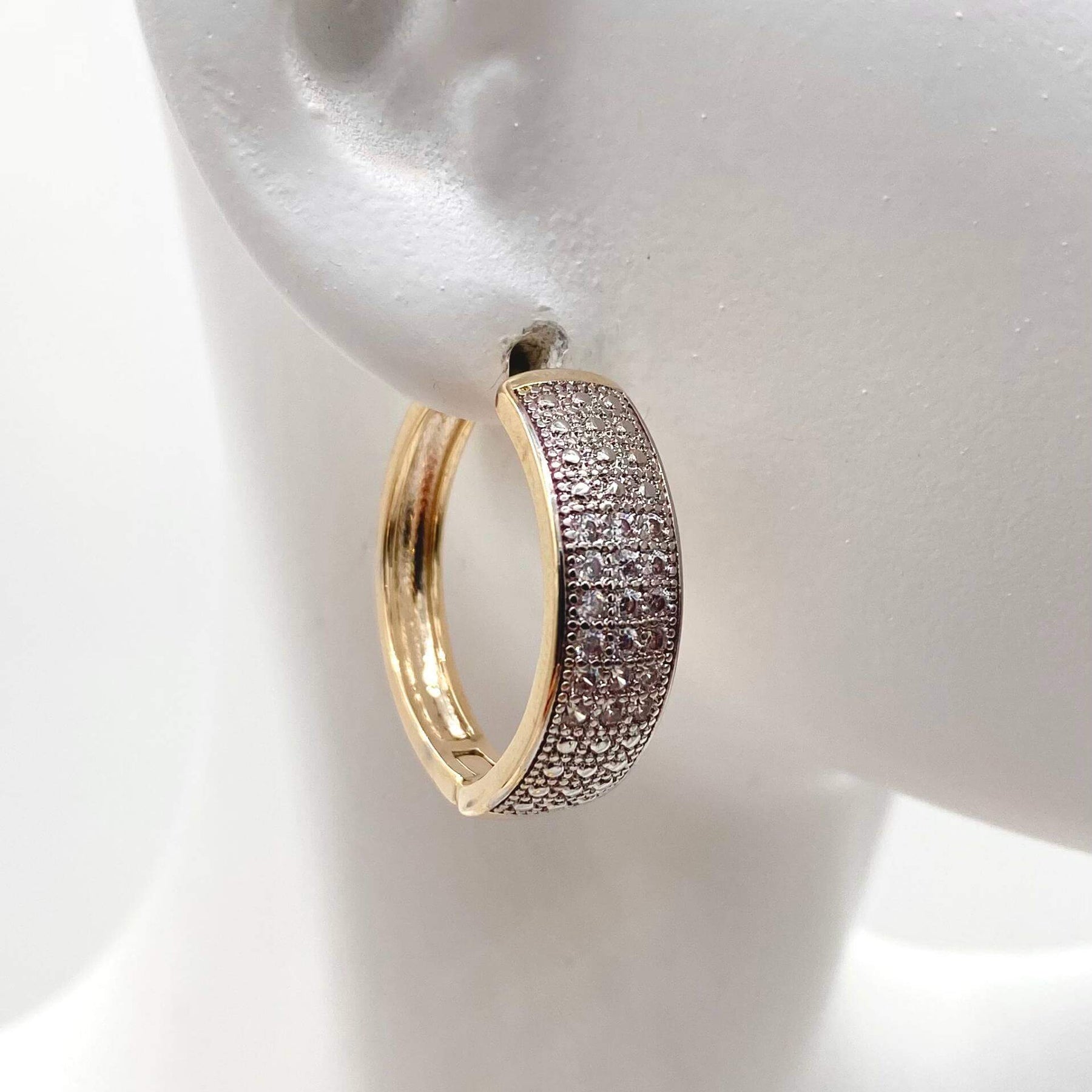 Huggie con zirconias, elaborados en chapa de oro 18K, tipo pavonada. perfecto para cualquier ocasión.