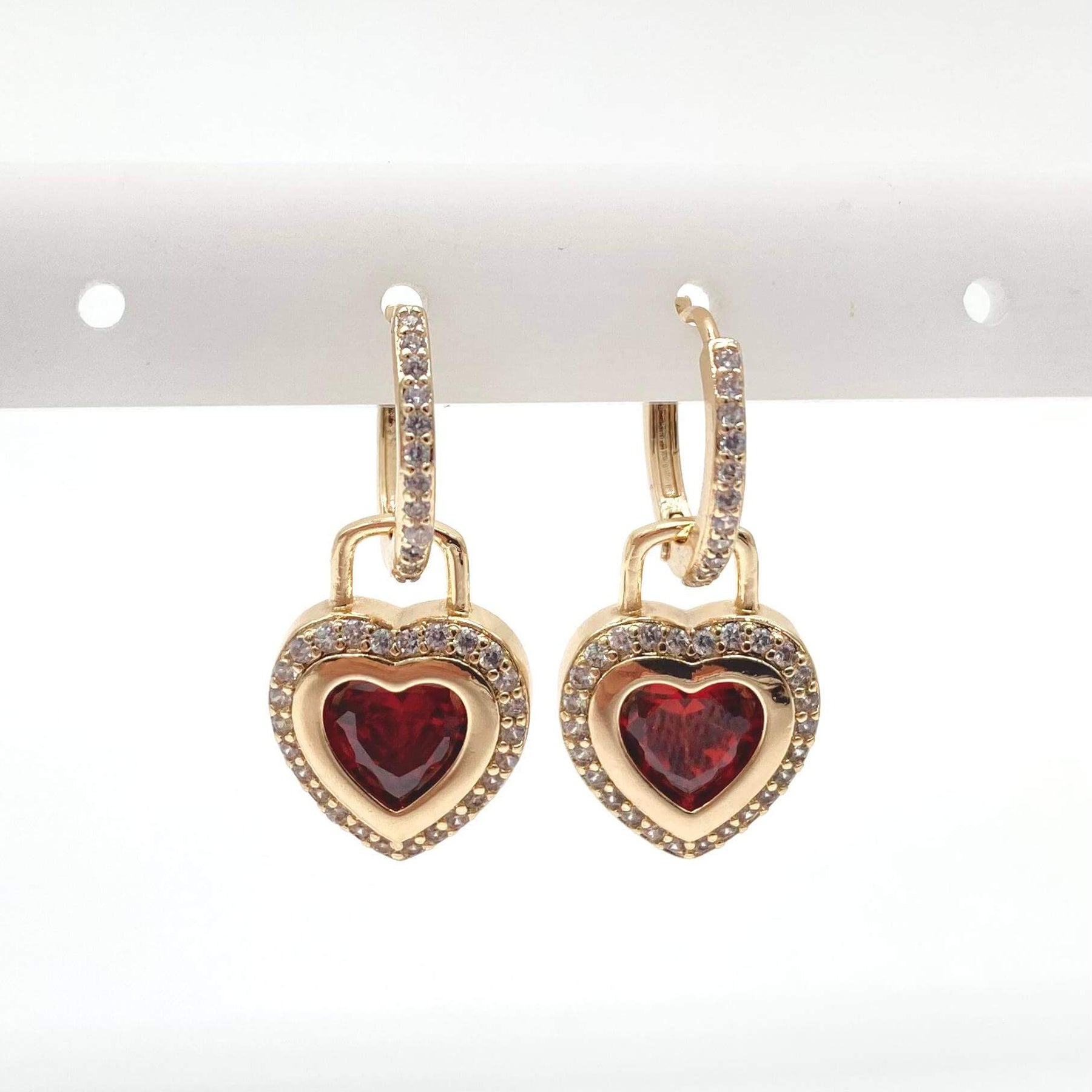 Arete corazon rojo– Chapa de oro 18K | MAEL