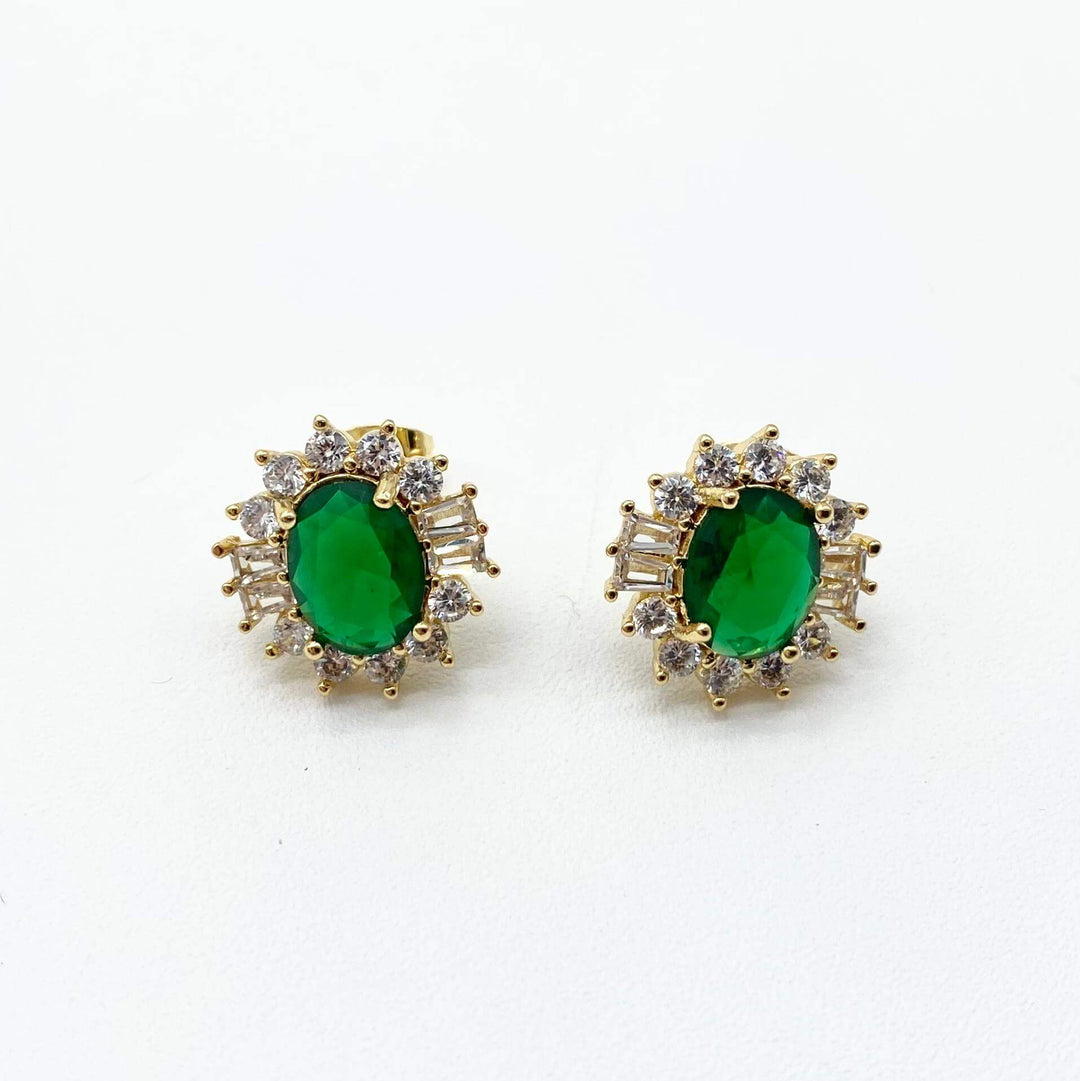 Arete esmeralda– Chapa de rodio 18K | MAEL