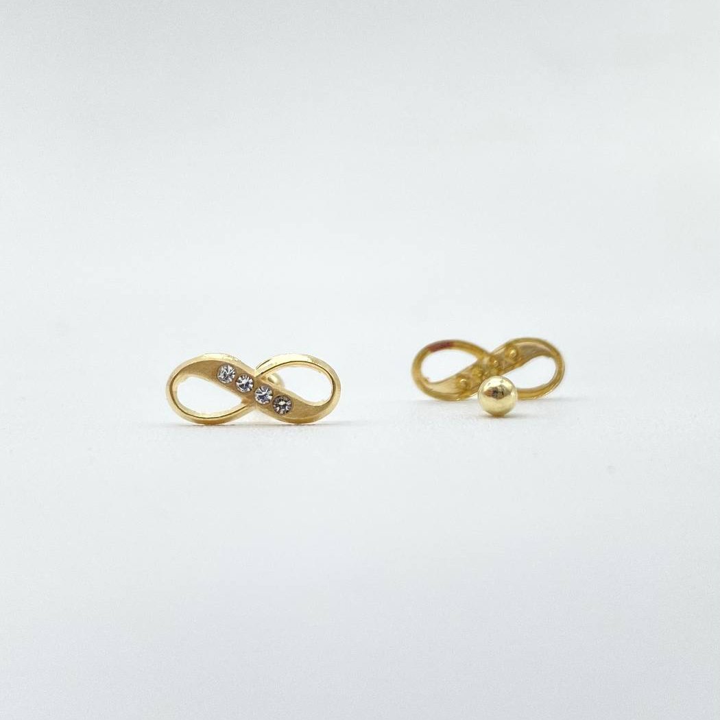 Broquel de oro 10K, (GARANTIZADO) recto bicelado diamantado con zirconia #3.