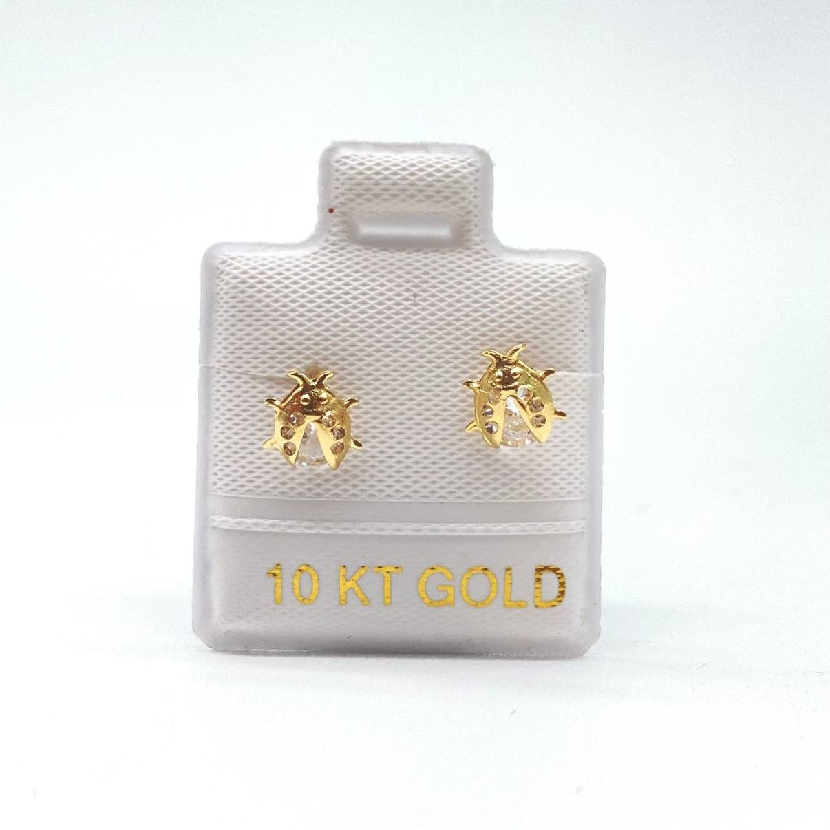 Broquel en oro 10k (GARANTIZADO), figura flor mate con zirconia.