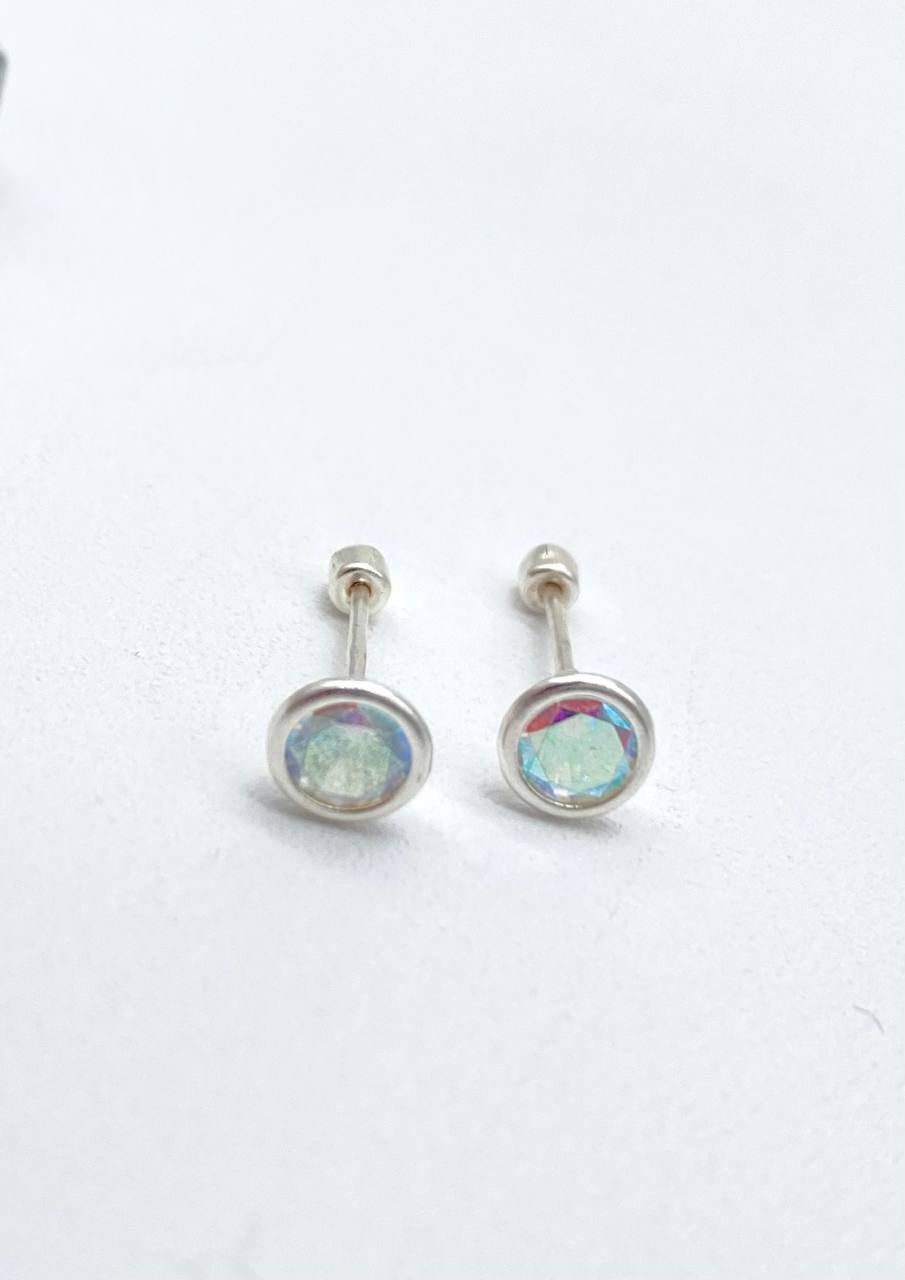 Broquel bicelado con zirconia circular tornasol #5 en Plata 925.