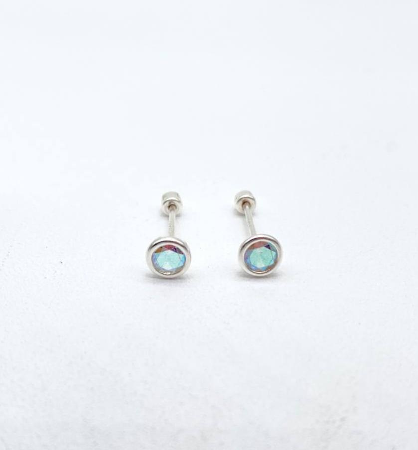 Broquel Bicelado con zirconia tornasol #4 Plata 925.
