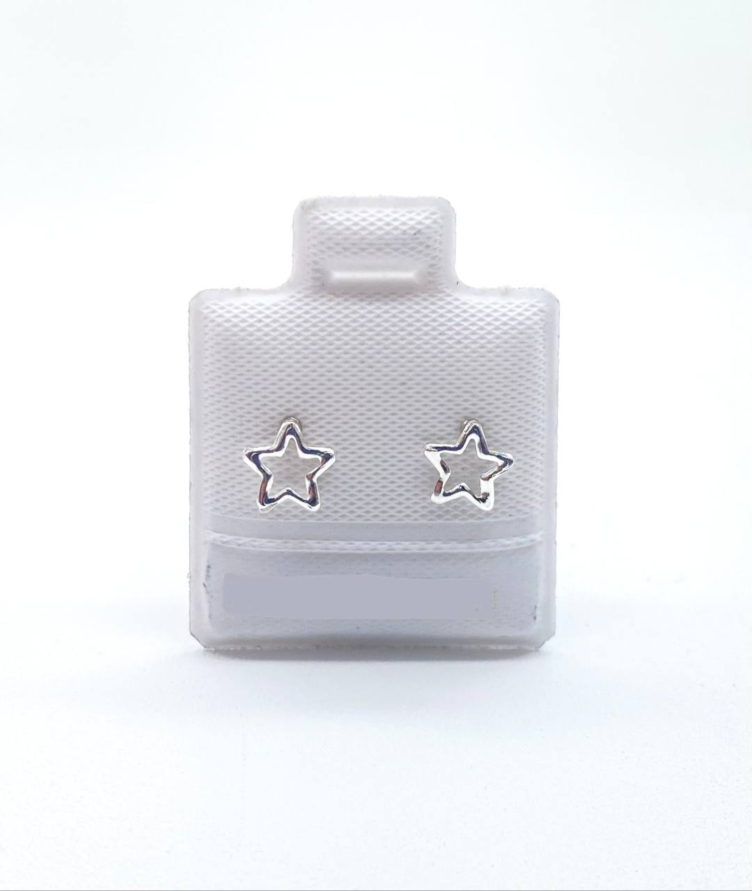 Broquel Plata 925 estilo curvo, con figura silueta osito y zirconia, con bolita en la parte de atrás.