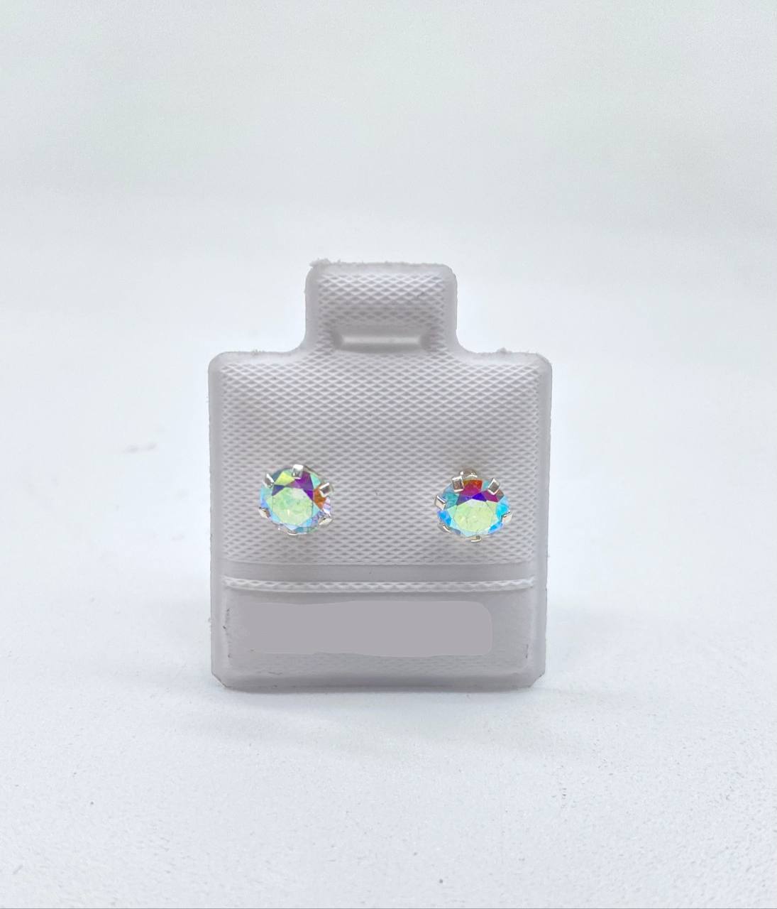 Broquel Recto #5 con zirconia tornasol circular en Plata 925. con bolita atrás