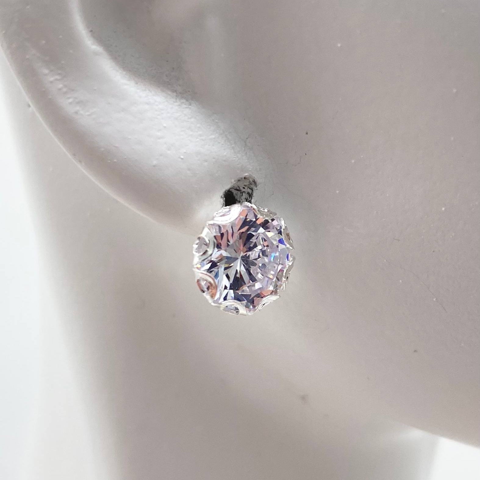 Broquel recto con zirconia 6 mm en color blanco, bicelado en curvas.