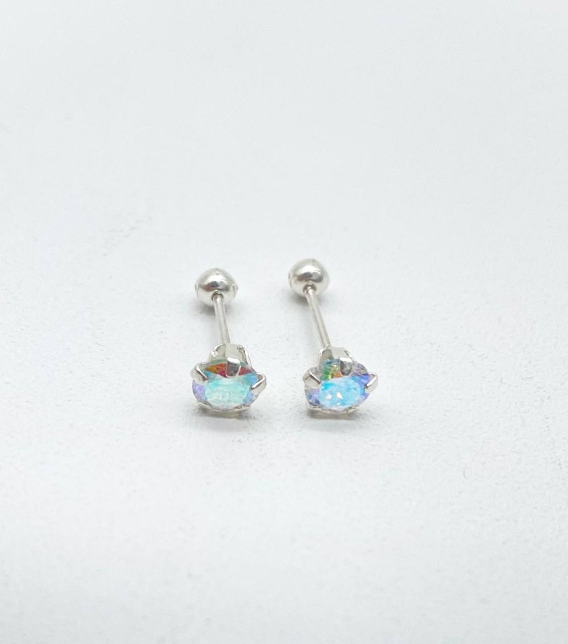Broquel recto con zirconia tornasol circular #4 en plata 925.