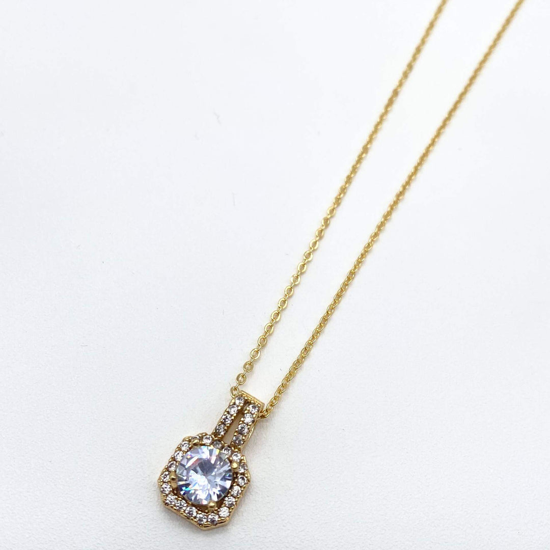 Collar con dije cuadro zirconia – Chapa de Oro 18K | MAEL