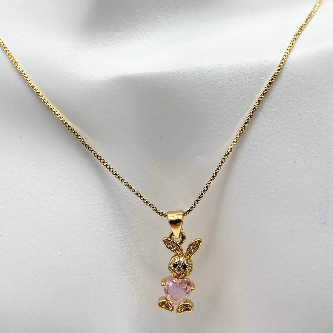 Collar conejo rosa – Chapa de Oro 18K | MAEL