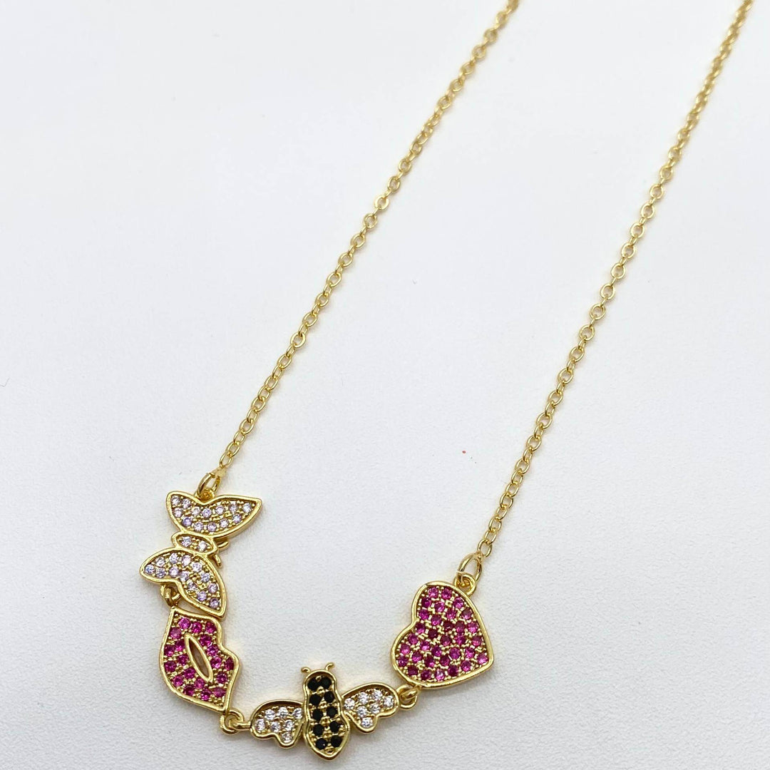 Collar abeja con perla y zirconias – Chapa de Oro 18K | MAEL