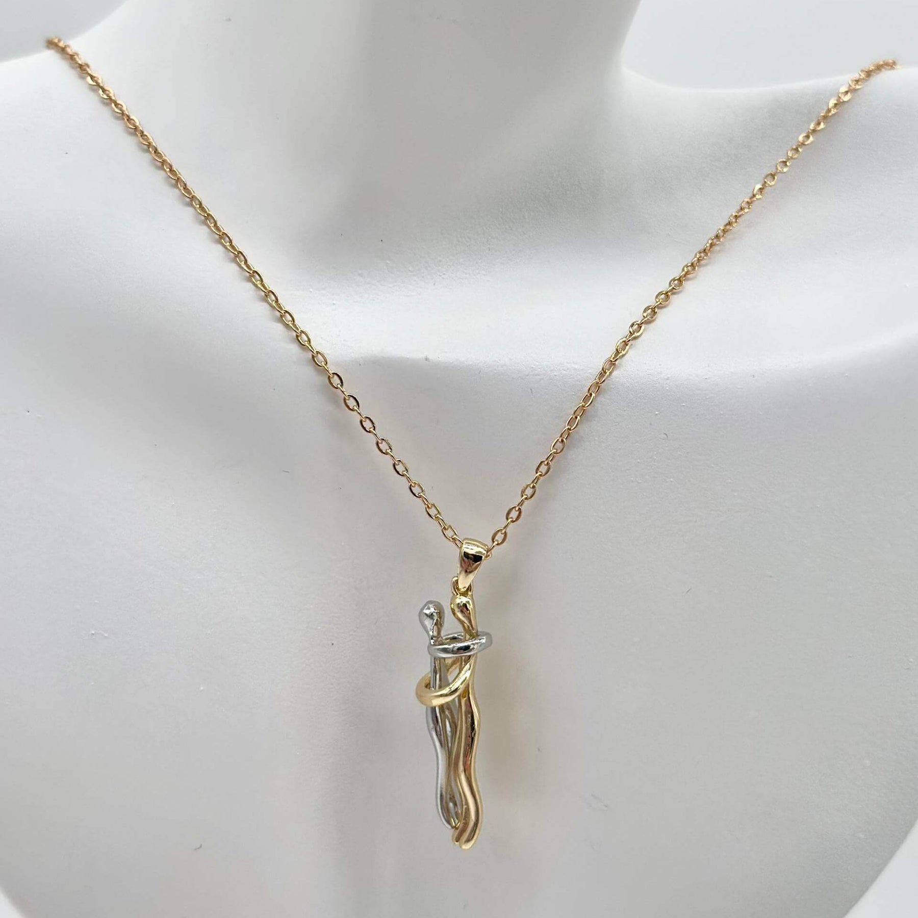 Cadena con dije de combinado, elaborados en chapa de oro 18K. Diseño elegante y perfecto para cualquier ocasión.