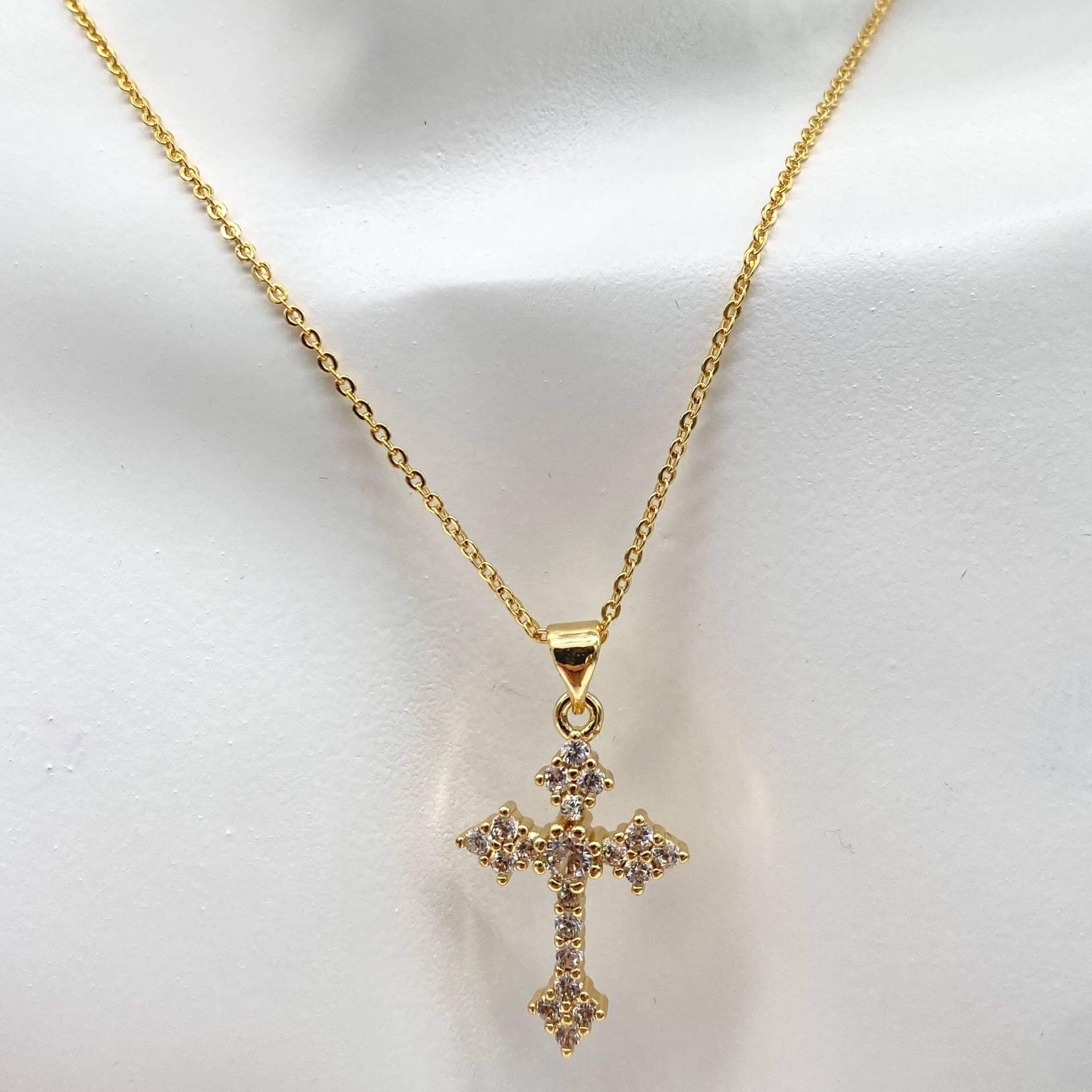 Collar con dije san judas tadeo, elaborado en chapa de oro 18K y adornado con zirconias.