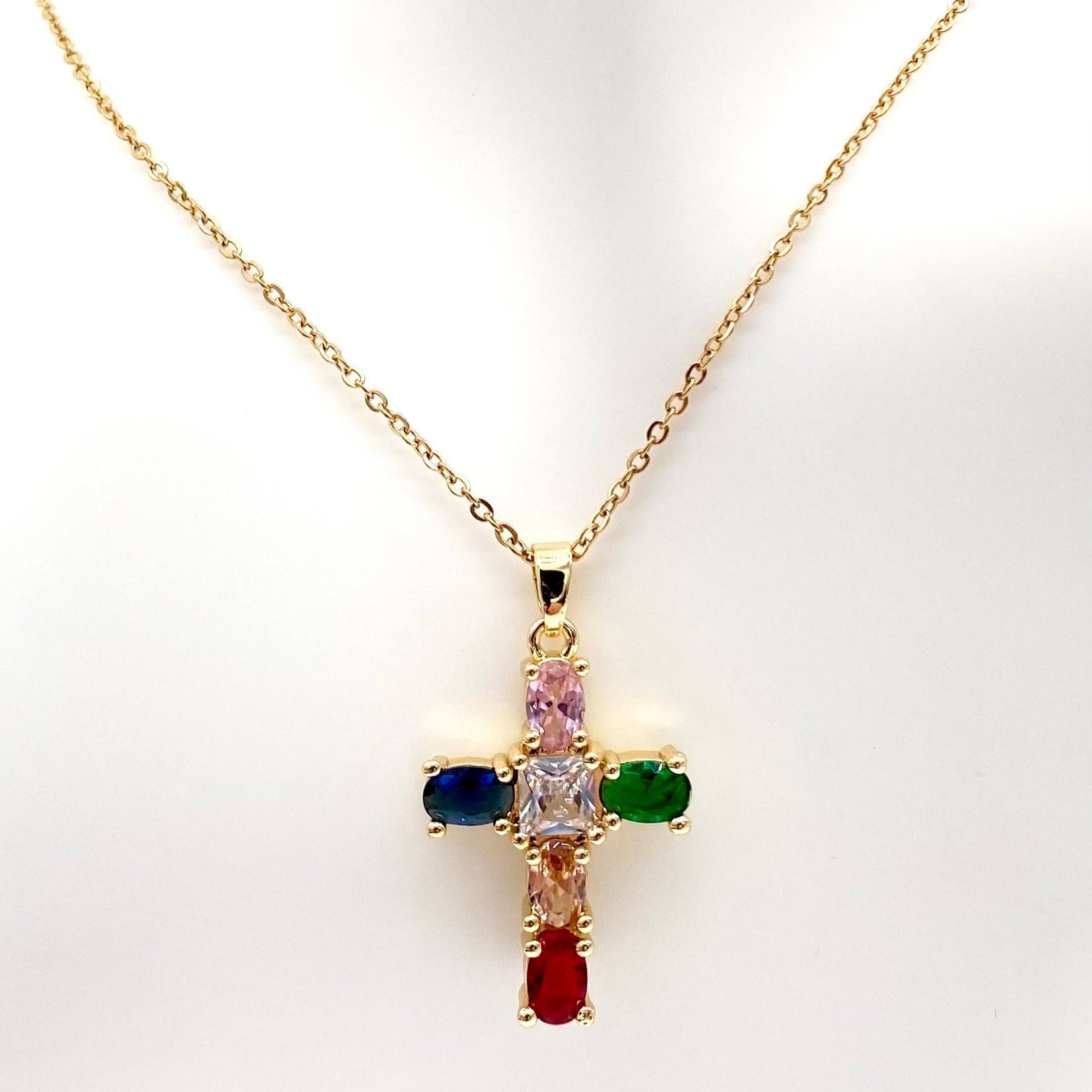 ROSARIO DE VIRGEN DE GUADALUPE CON DISEÑO DE CORAZÓN Y ZIRCONIAS ALREDEDOR EN CHAPA DE ORO 18K. MEDIDAS 45 CM DE LARGO