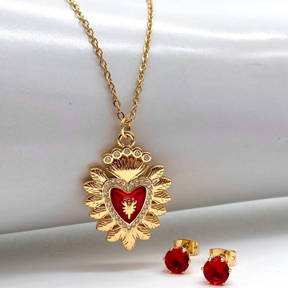 Juego en chapa de oro 18k, incluye aretes, dije, cadena.