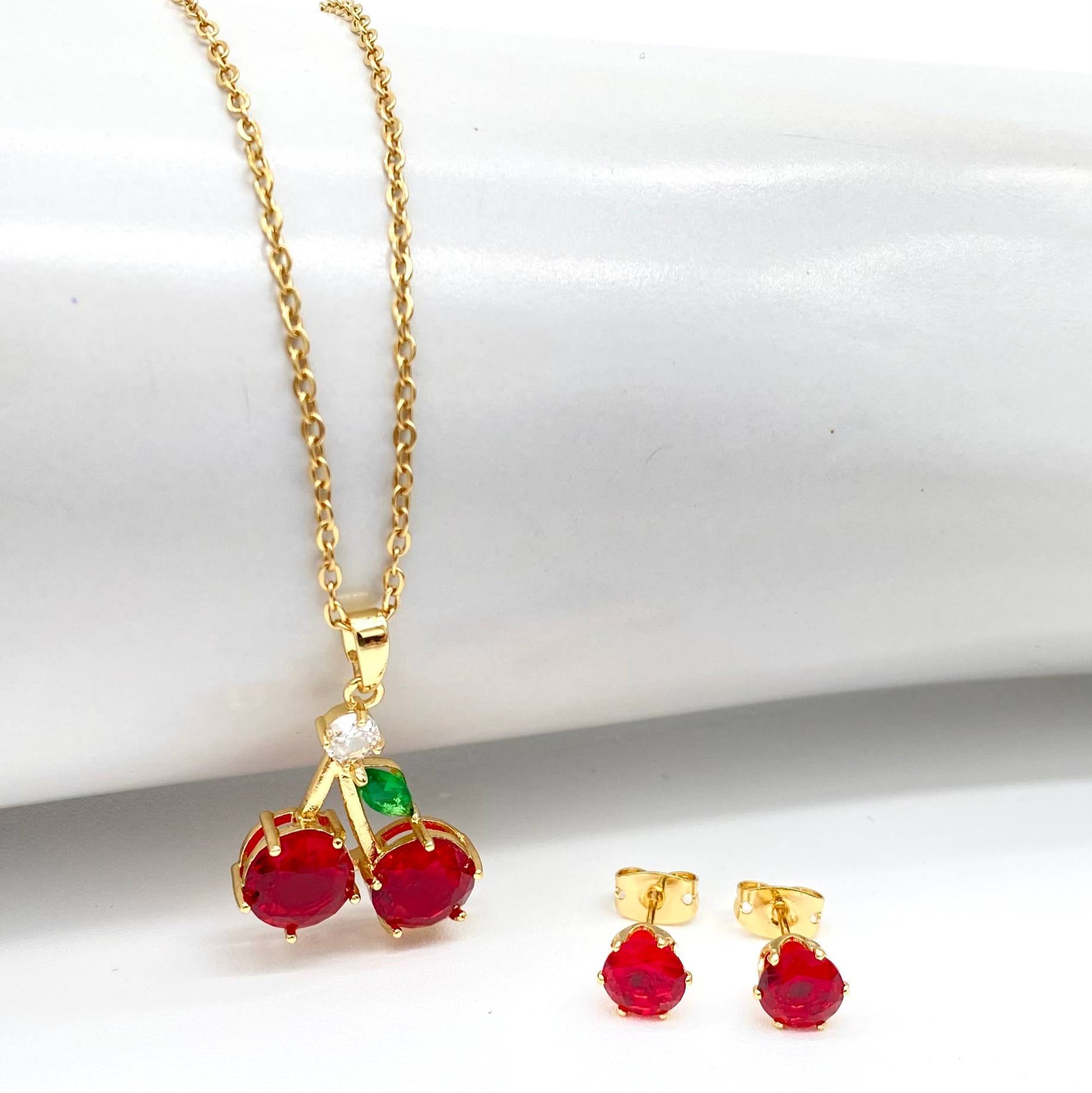 Juego en chapa de oro 18k color dorado con dije, aretes y cadena