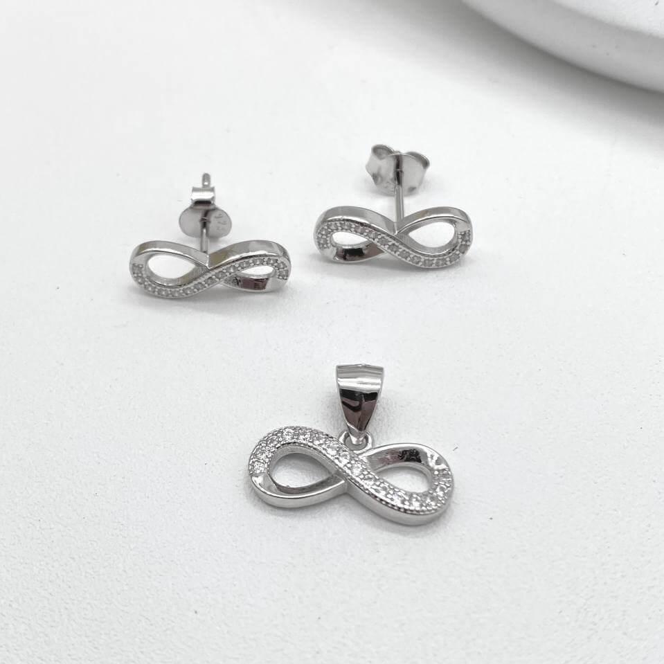 Juego de aretes y dije en forma de corazón (mitad texturizado y zirconia) con cierre de mariposa en la parte de atrás en plata 925 mexicana.