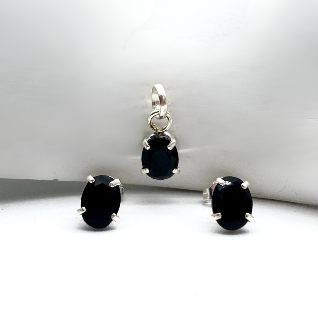 Juego de aretes y dije en forma de luna con zirconias, con cierre de mariposa en la parte de atrás en plata 925 italiana.