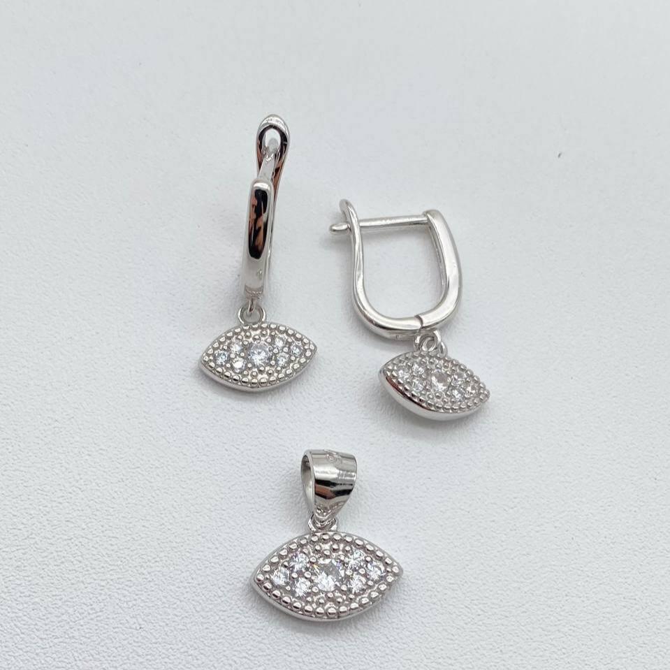 Juego de aretes y dije con figura oval en color negro, con cierre de mariposa en la parte de atrás, en plata 925 mexicana.