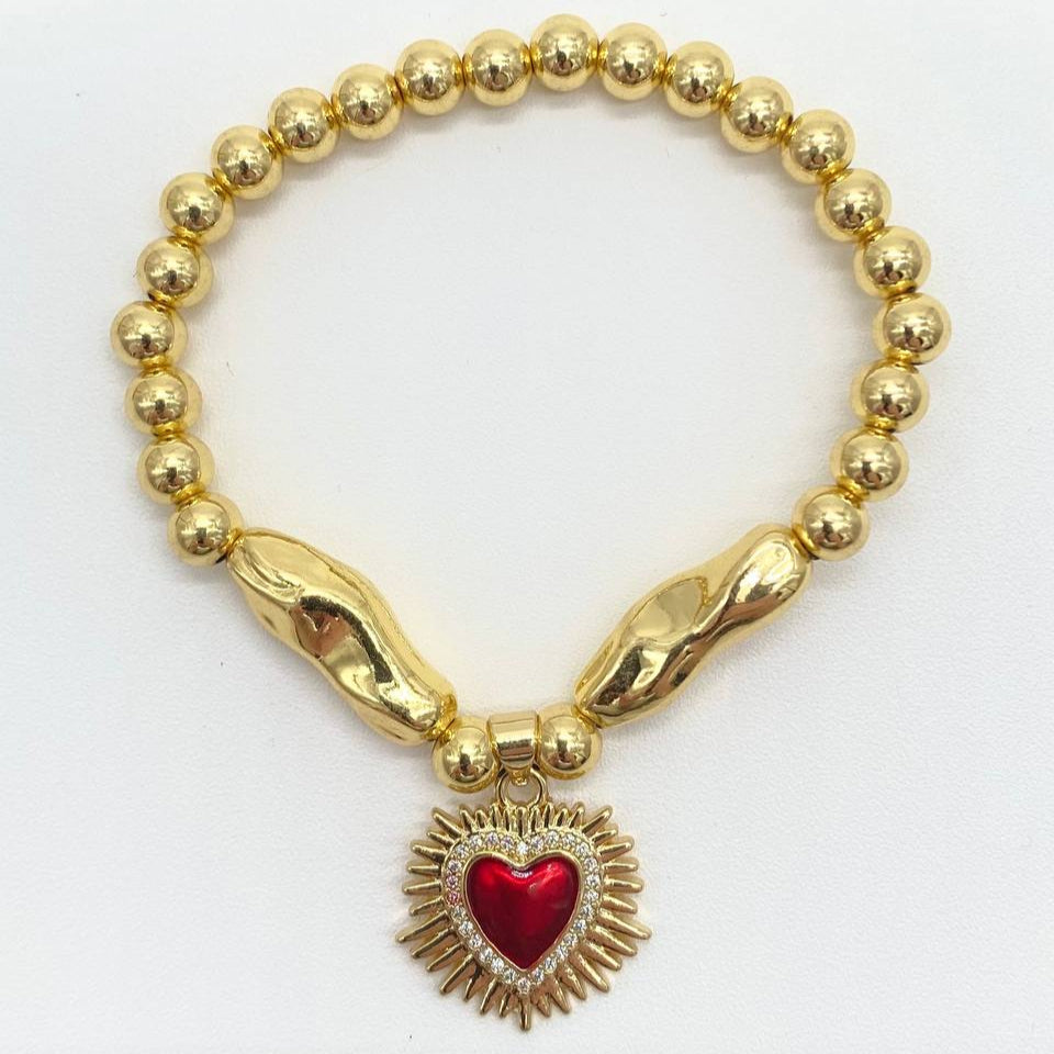 Pulso bolas diferentes tamaños diamantados en chapa de oro 18k