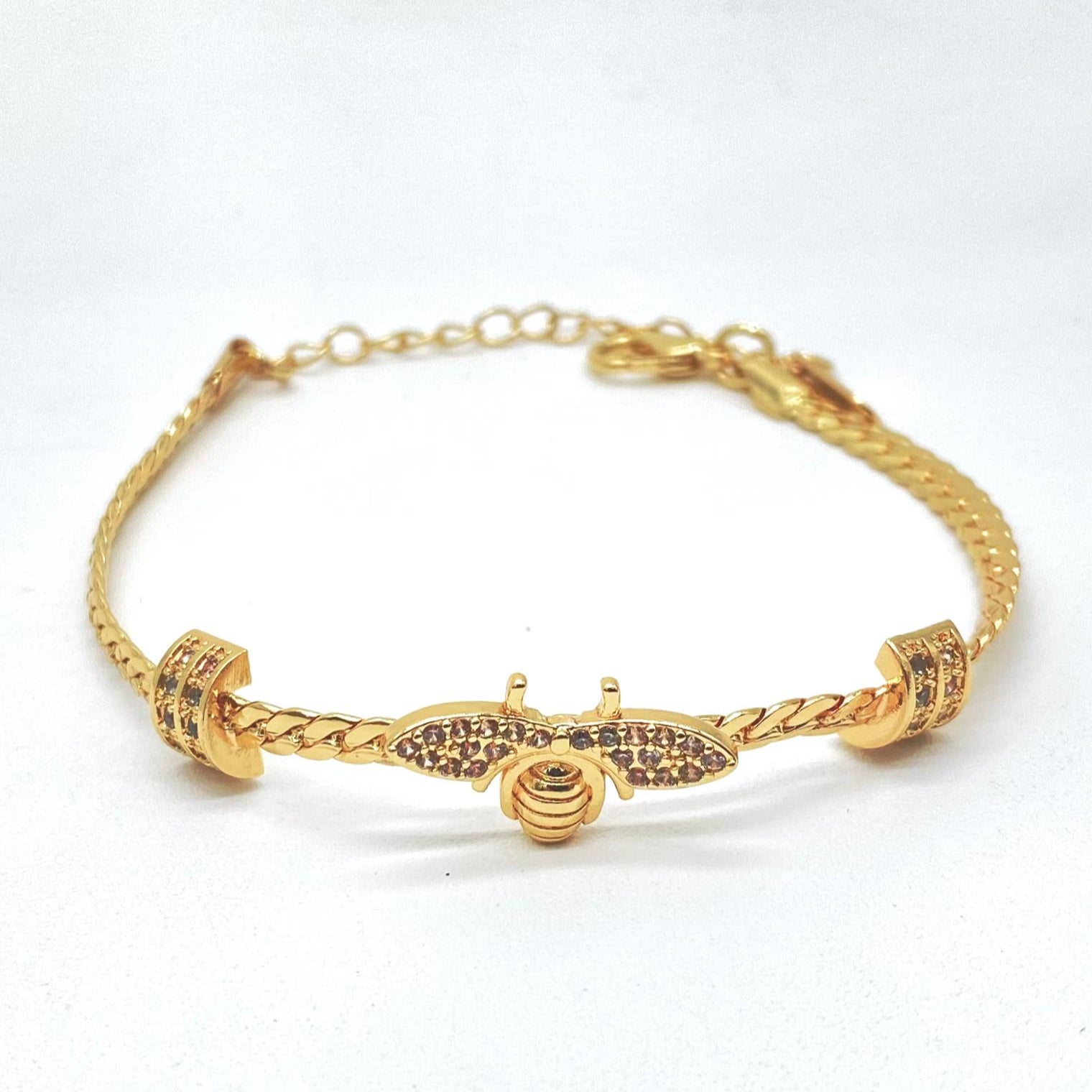 Pulsera en chapa de oro 18k, ajustable con bolas