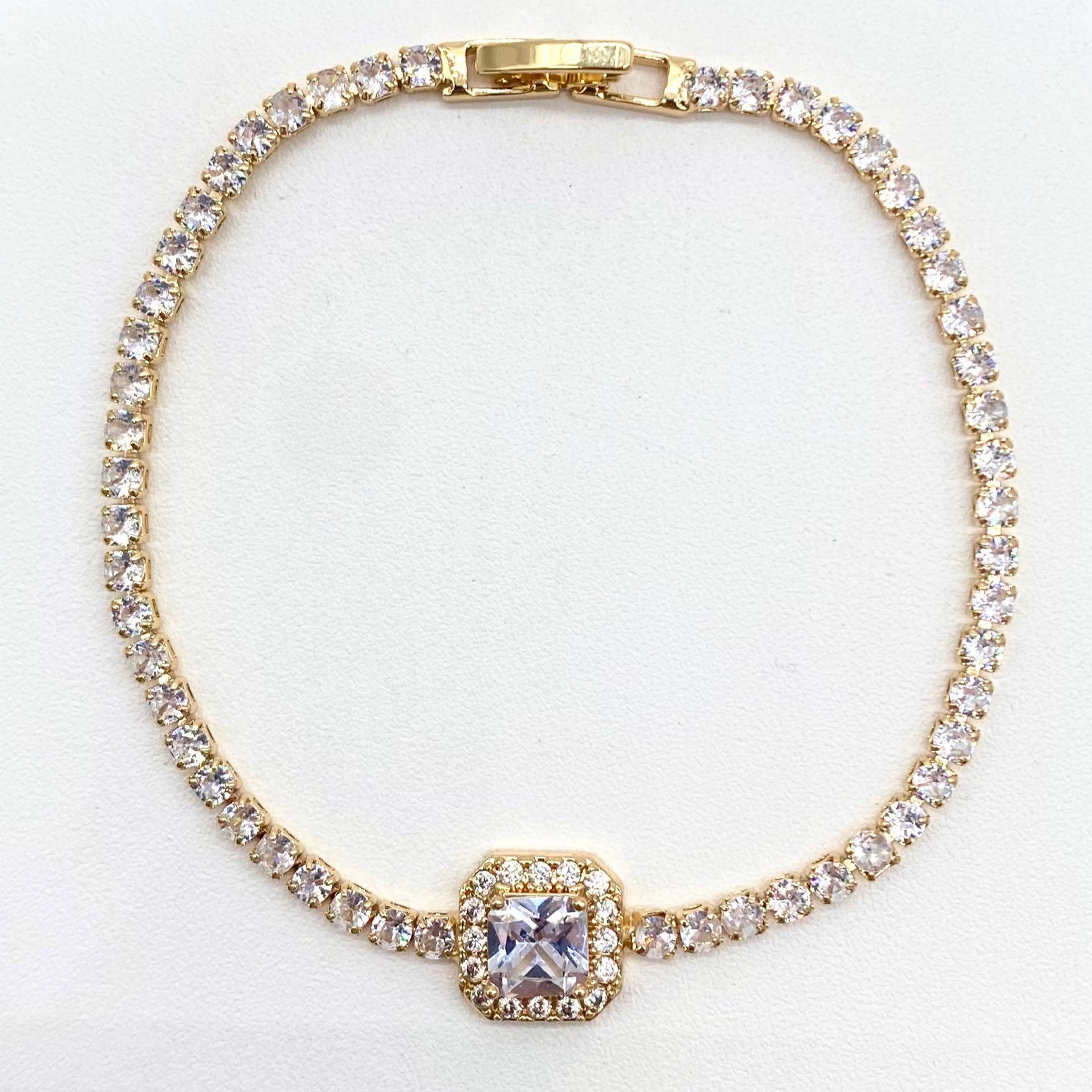 Pulsera en chapa de oro 18k con dijes colgantes.