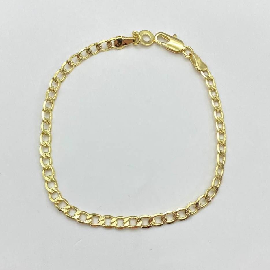 Pulso de bolitas en chapa de oro 18k, con sandia colgante