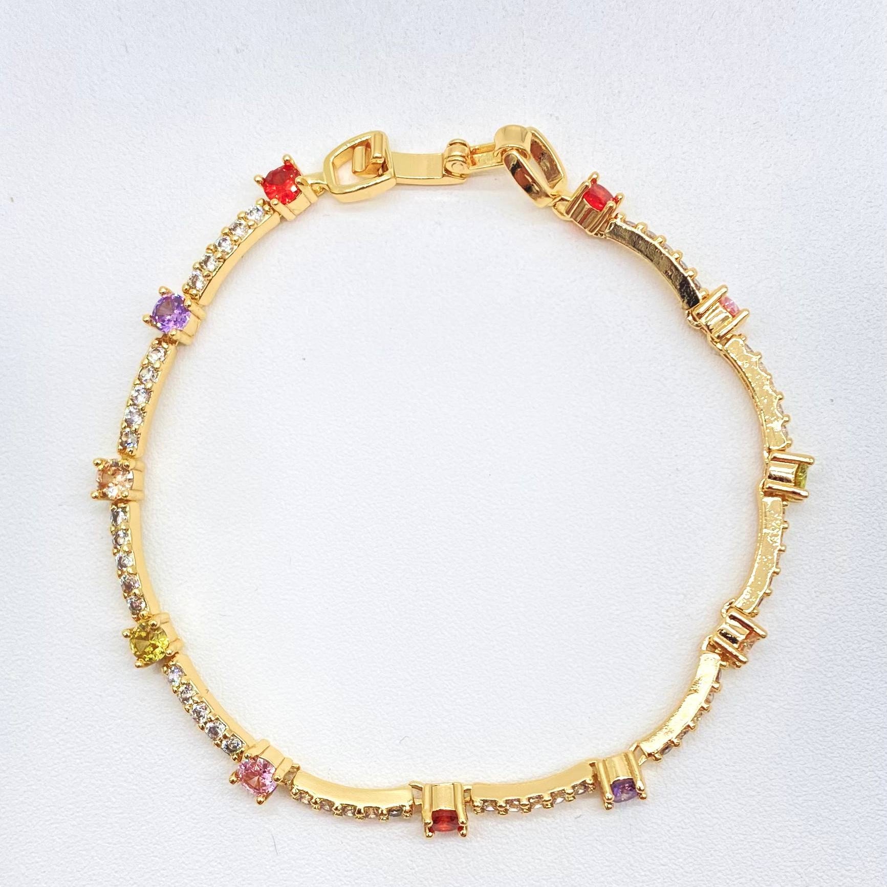 Pulso con corazon y perlas con bolas en chapa de oro 18k