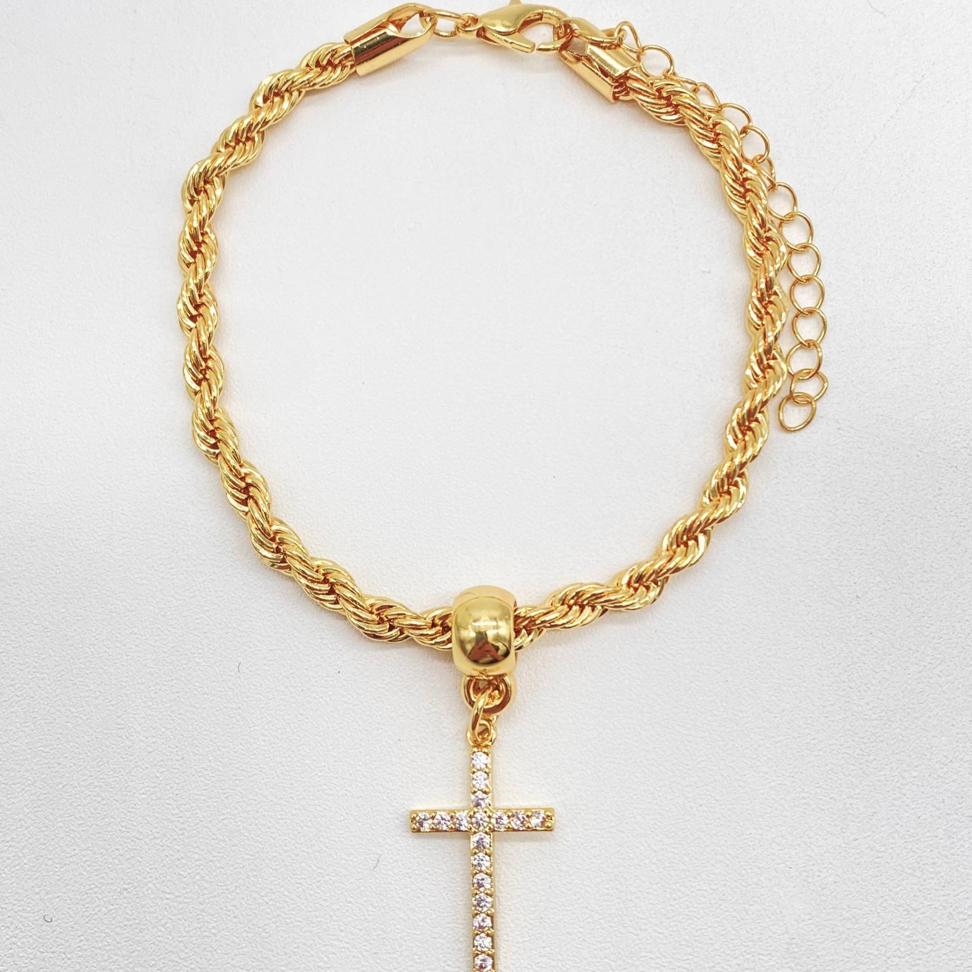 Pulso en chapa de oro 18k con perlas y dije vaan cleef.