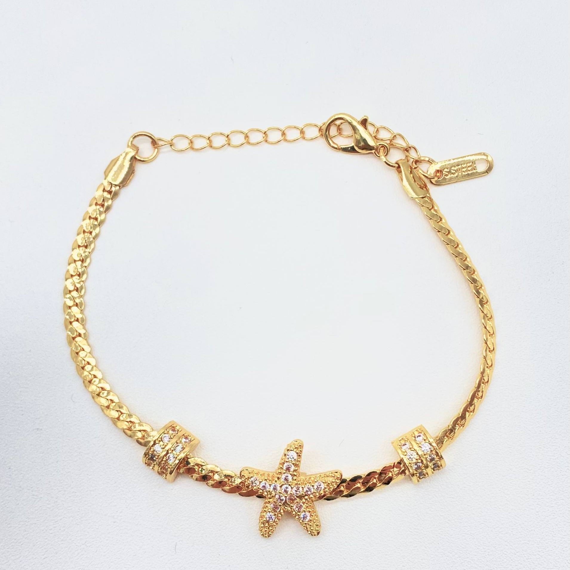 Brazalete en chapa de oro 18k, color dorado con un diseño esmaltado en color negro.