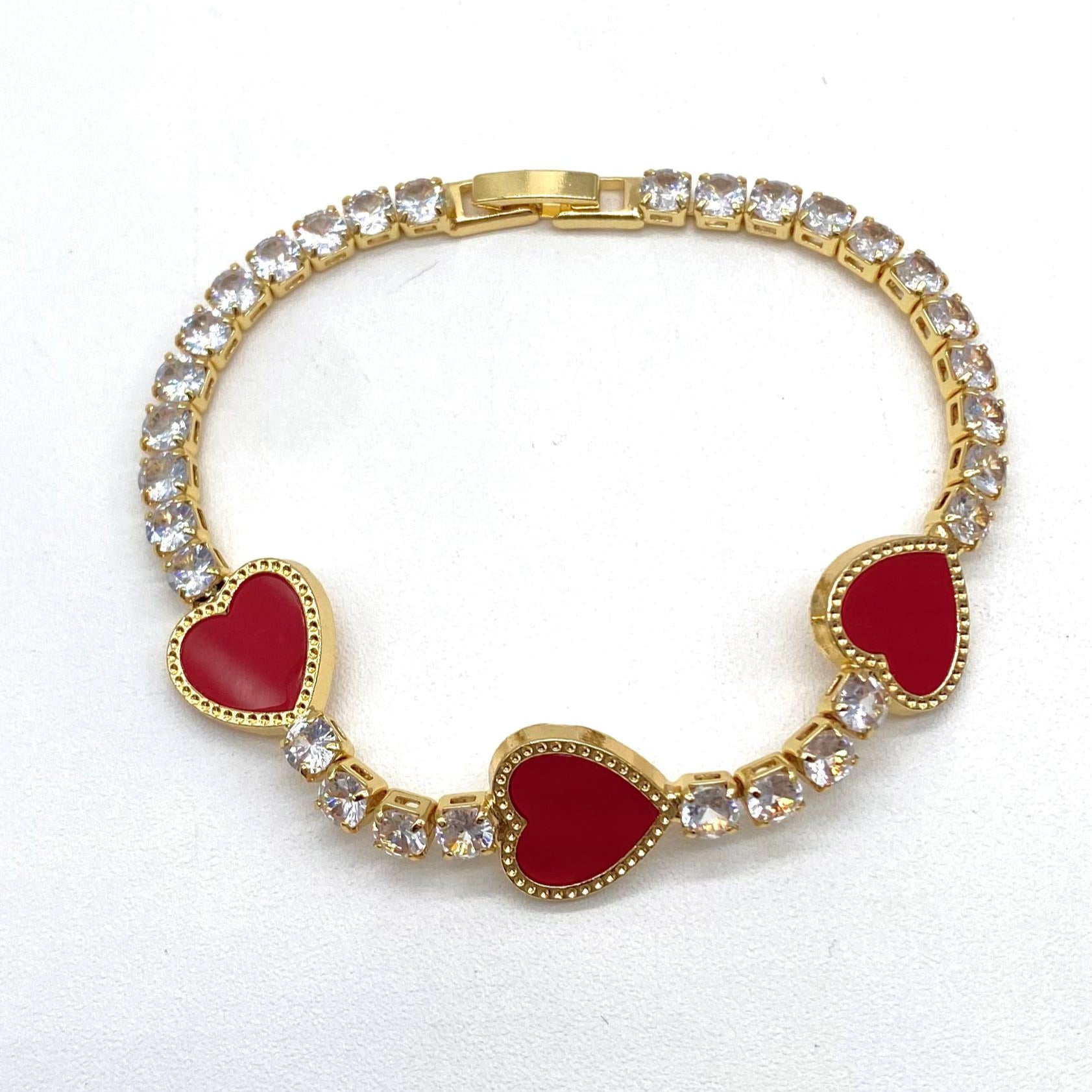Pulso en chapa de oro 18k, tipo tennis con dije negro.
