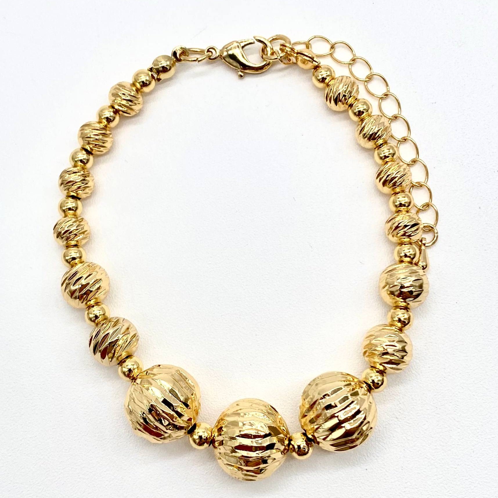 Pulso con bolas diamantas en dorado y plateado, chapa de oro 18k.