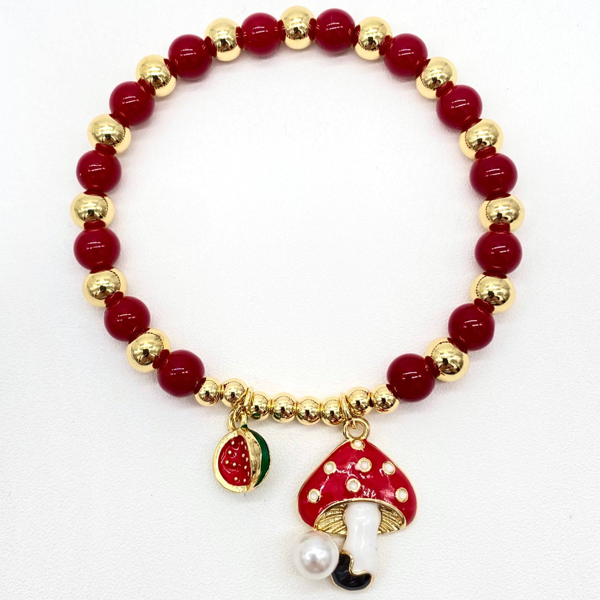 Pulso chapa de oro 18k, con dijes colgantes de corazon y cereza