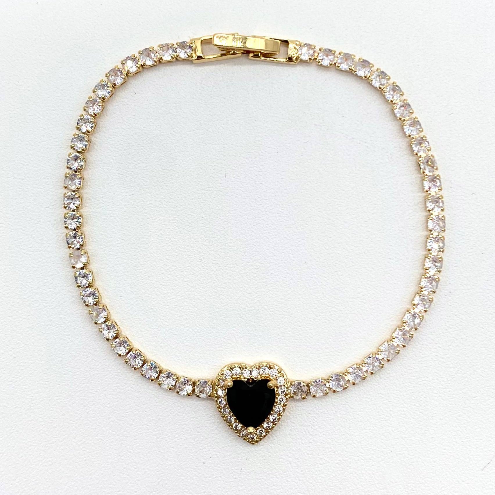 Pulsera en chapa de oro 18k, ajustable con zirconias.