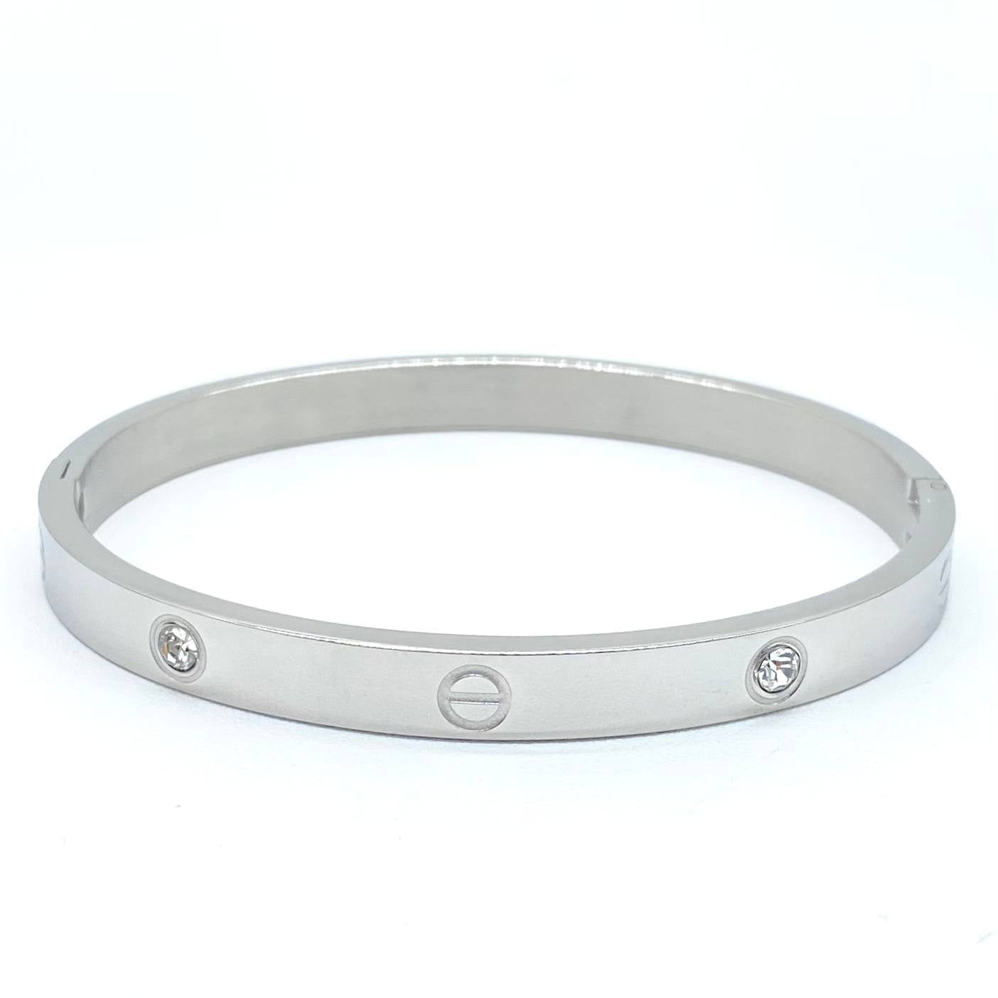 Brazalete en acero inoxidable con cerezas, ajustable.
