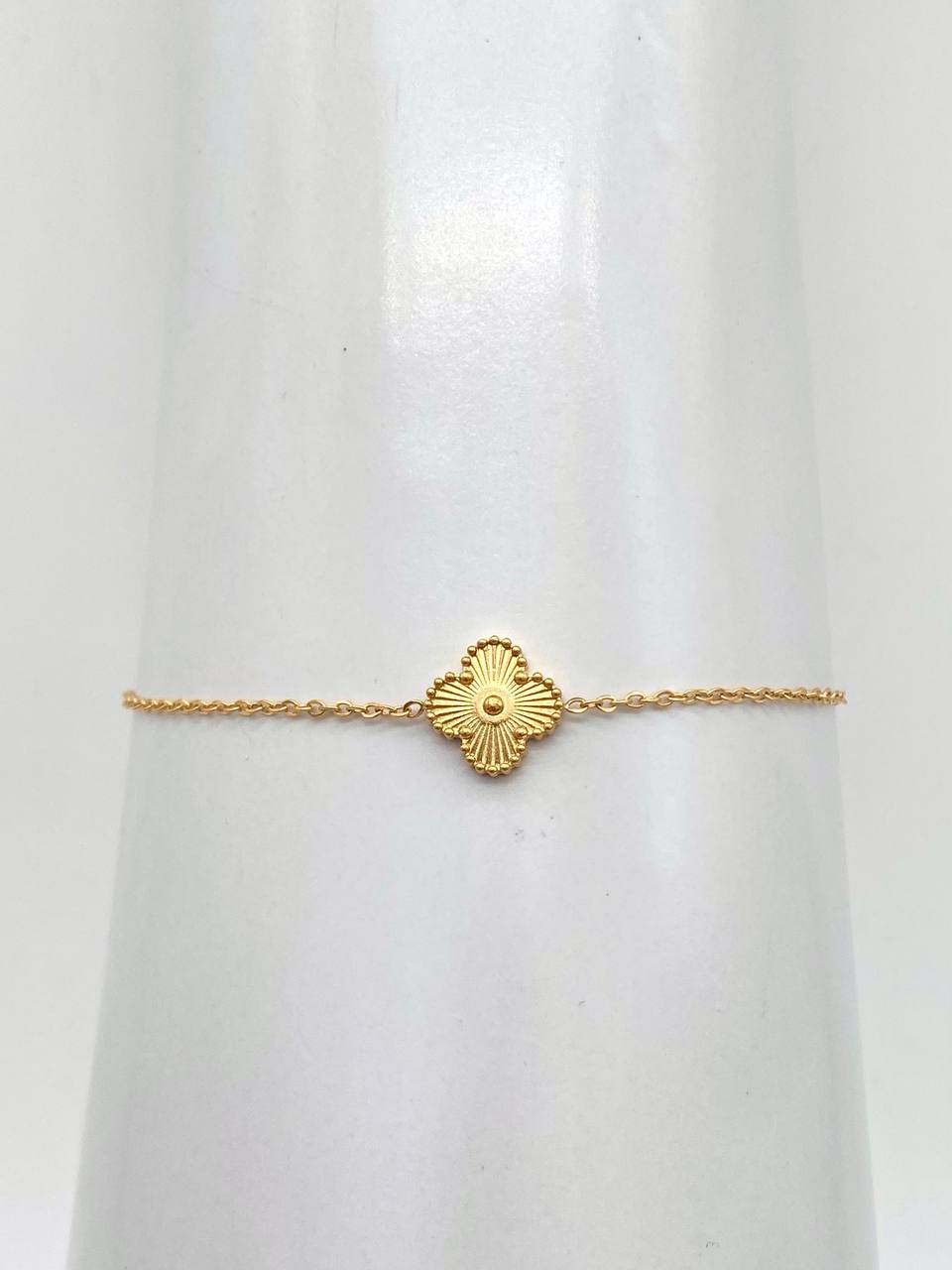 Semanario en acero inoxidable, color dorado, con medalla de San Benito y cruz.