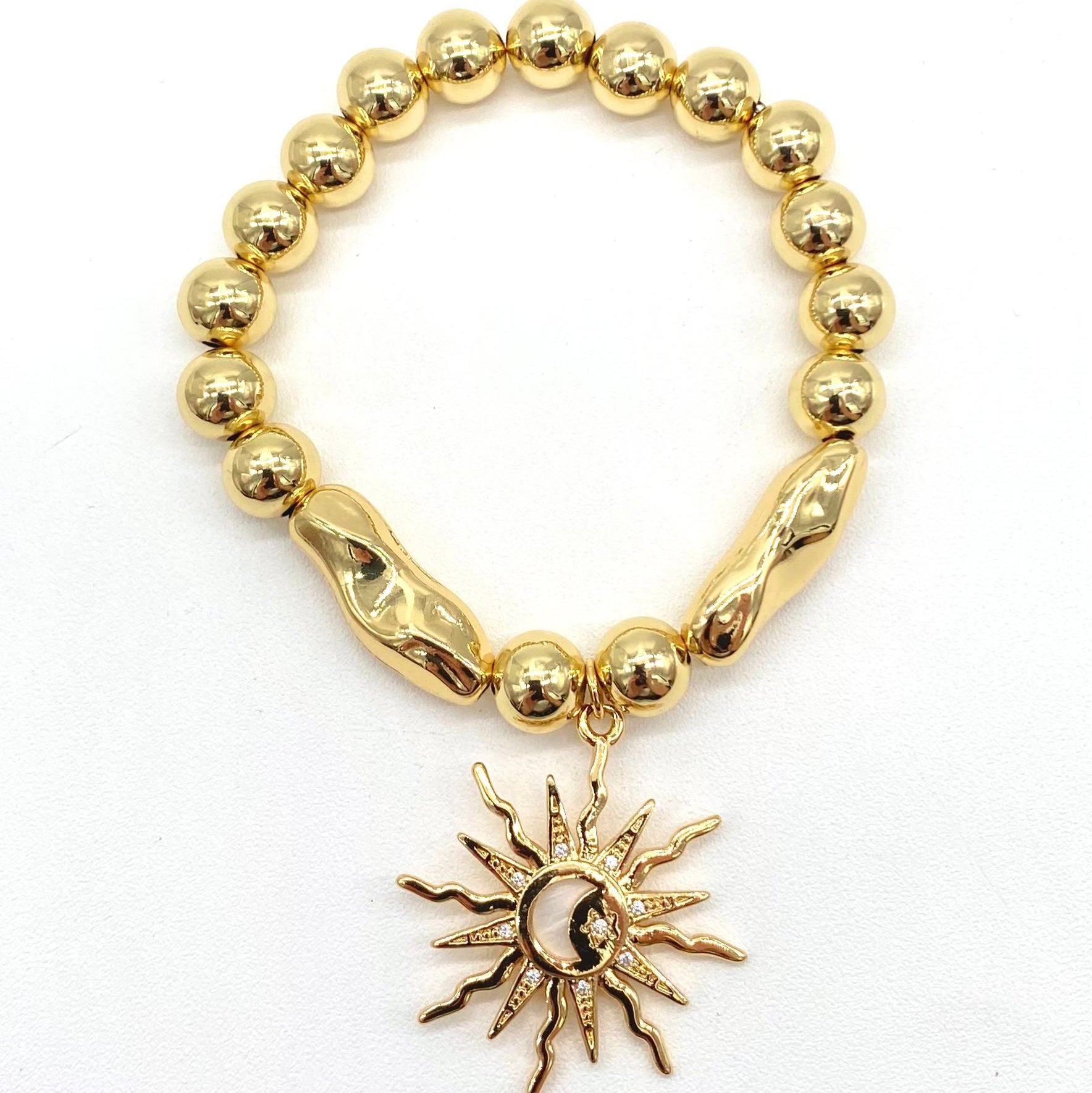 Brazalete en acero inoxidable, color plateado con corazones en dorado.